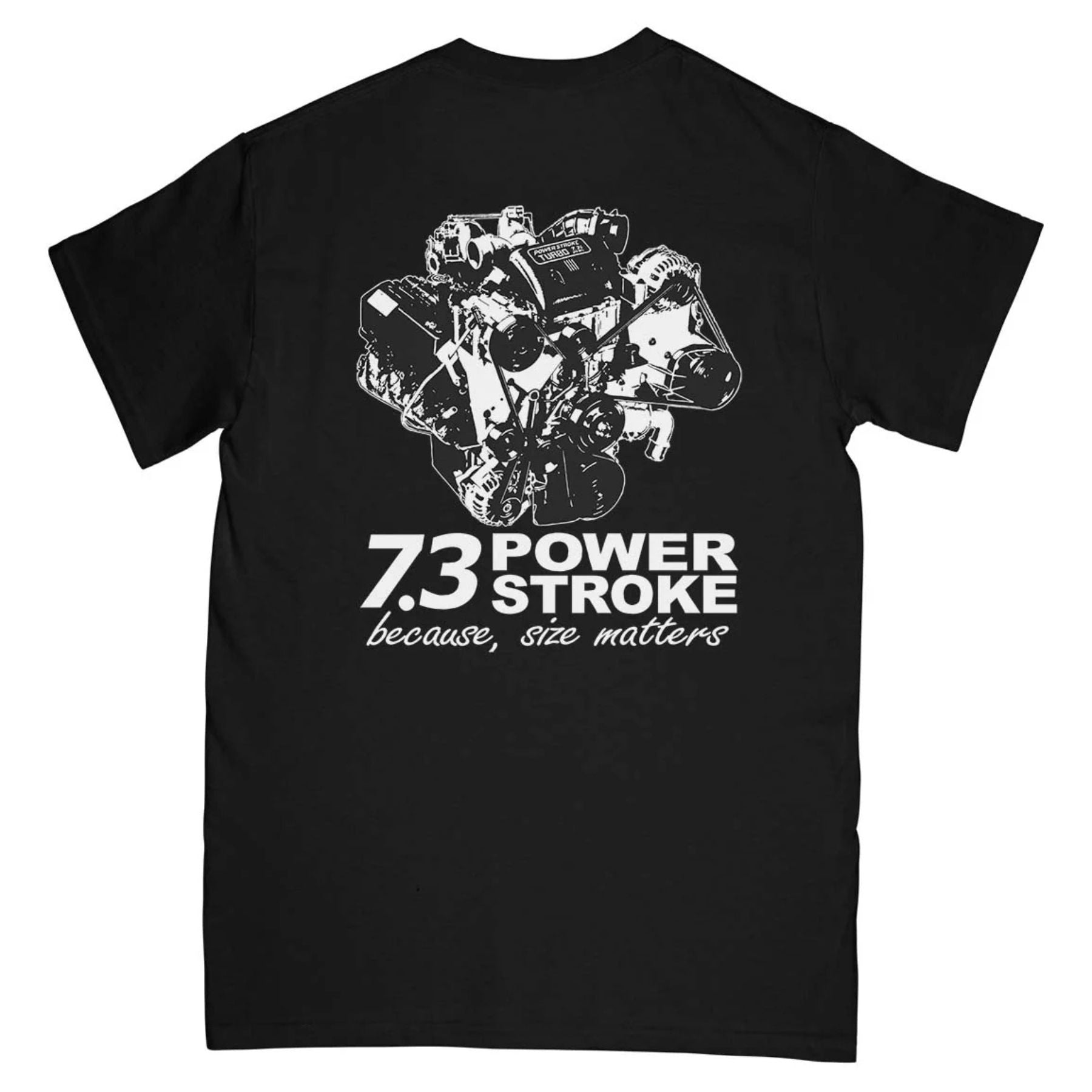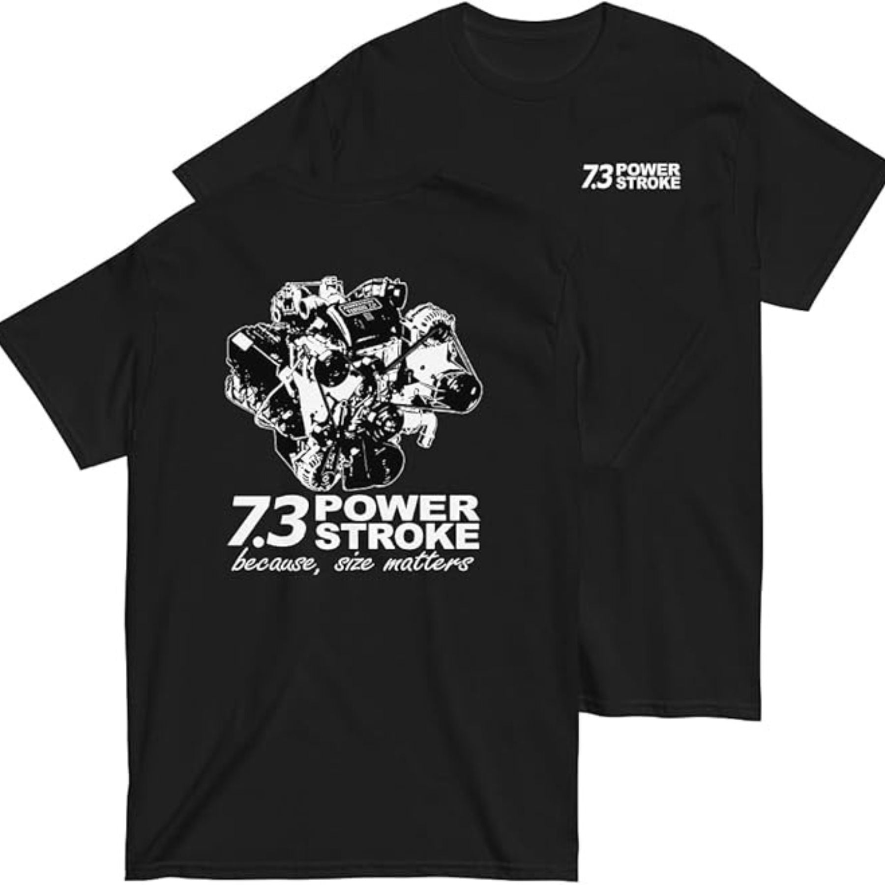 This 7.3 Power T-shirt is a tribute to the legendary Ford Power Stroke engine that defined a generation. With its authentic 90s styled graphic, this tee is a must-have for every truck enthusiast. The unique 2-sided graphic design showcases the engine's power, making it a true car parts shirt. Perfect for the garage, a car show, or just everyday wear, this shirt is a bold way to celebrate a piece of automotive history.