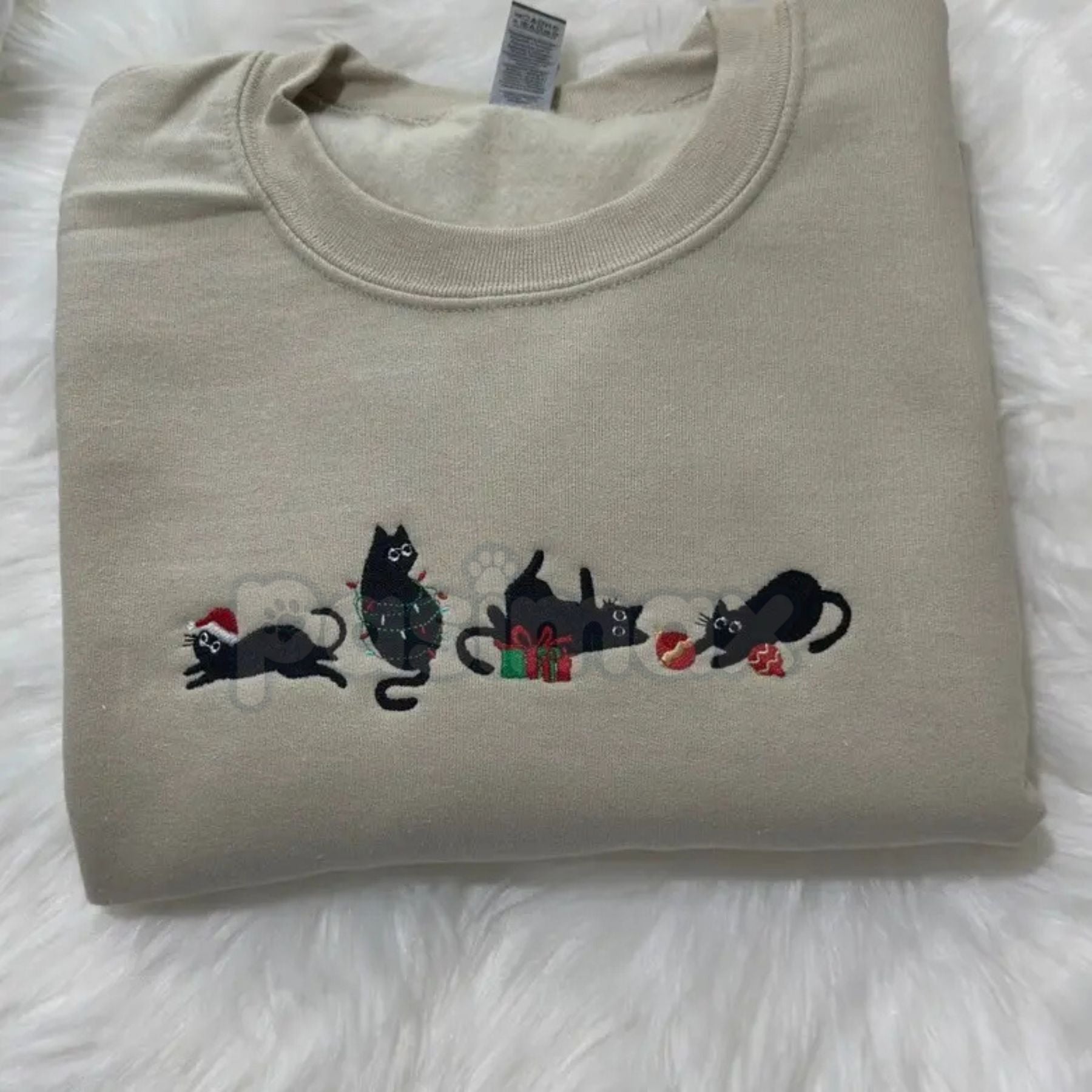 Black Christmas Cats Embroidered Sweatshirt – Cozy Holiday Cat Mom Crewneck