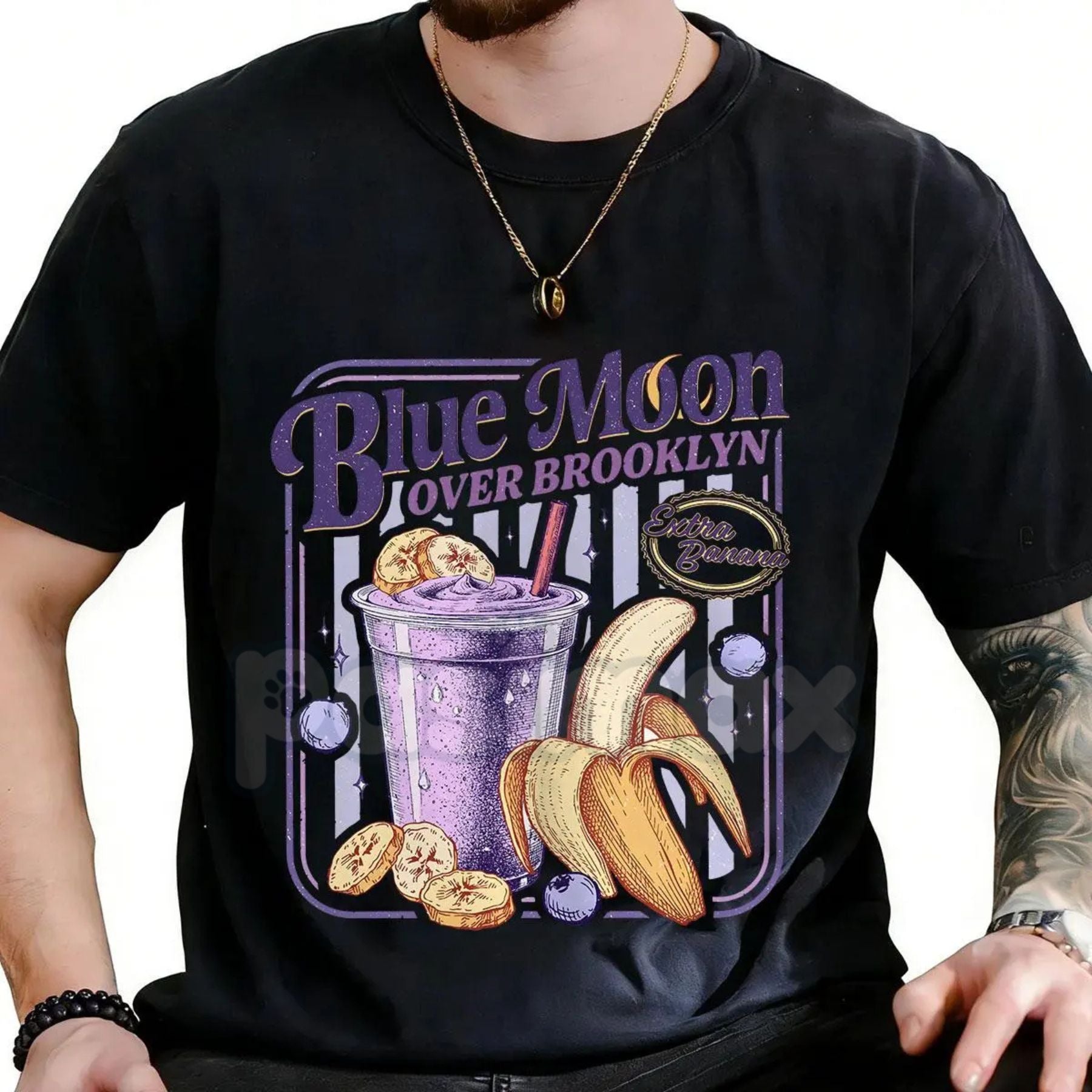 Parody Blue Moon Over Brooklyn T-Shirt - Extra Banana Smoothie Graphic Tee, Heated Rivalry Fan Merch, Shane and Ilya Hockey Romance Shirt, Ironic Brooklyn Sports Bar Apparel