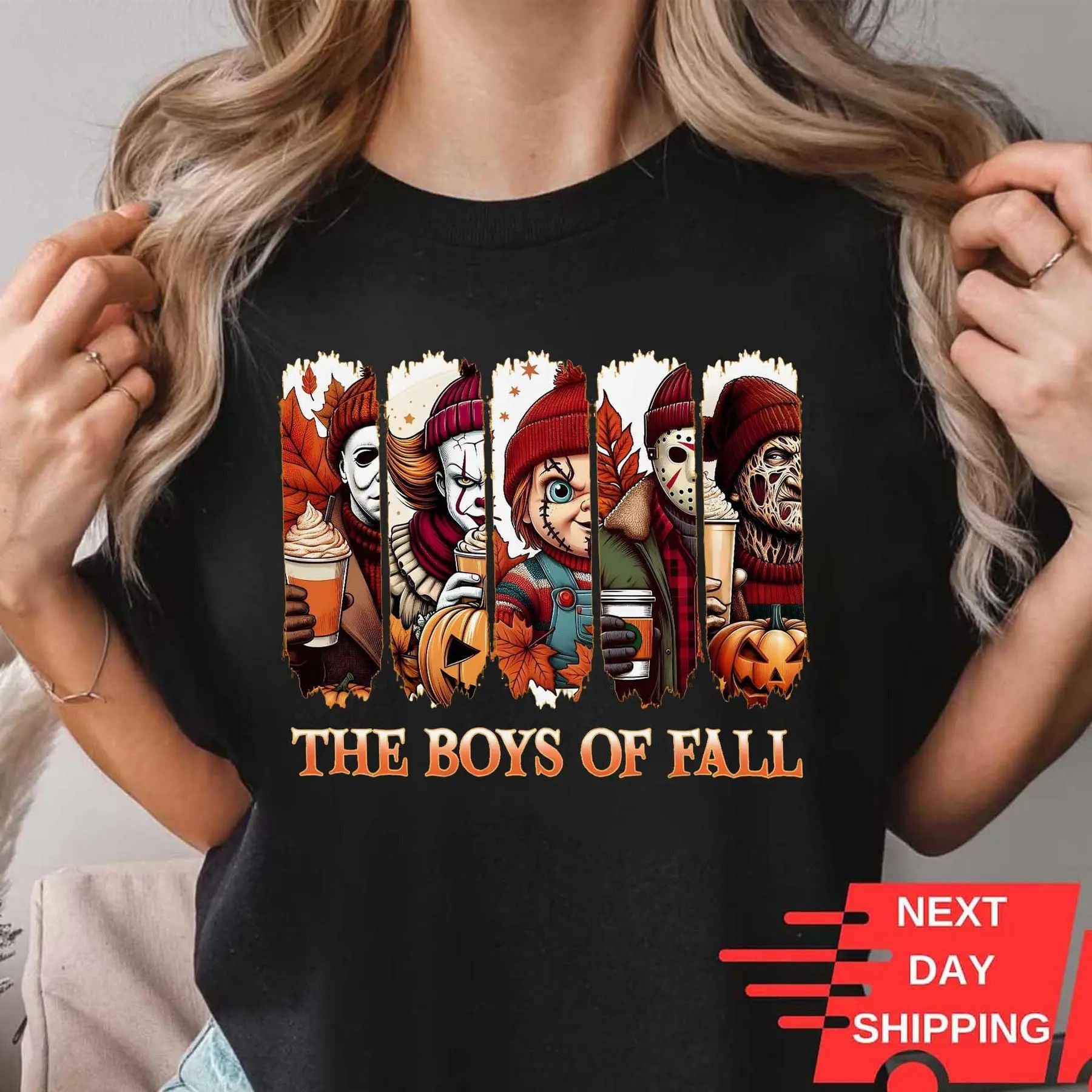 'The Boys Of Fall' Horror Shirt – Fall Vibes Halloween Tee, Horror Friends Autumn Shirt, Cozy Season Fan Gift, Unisex Graphic Top
