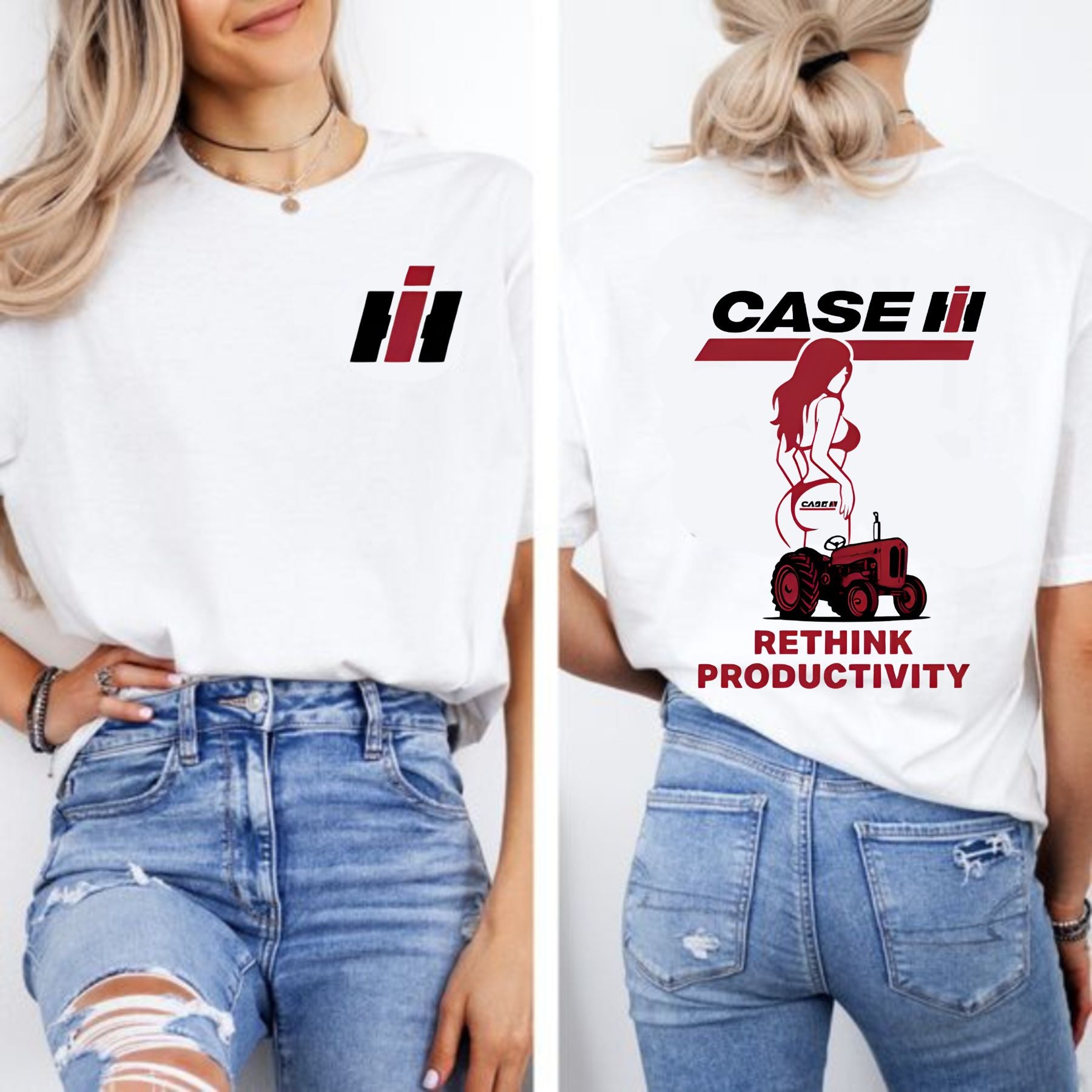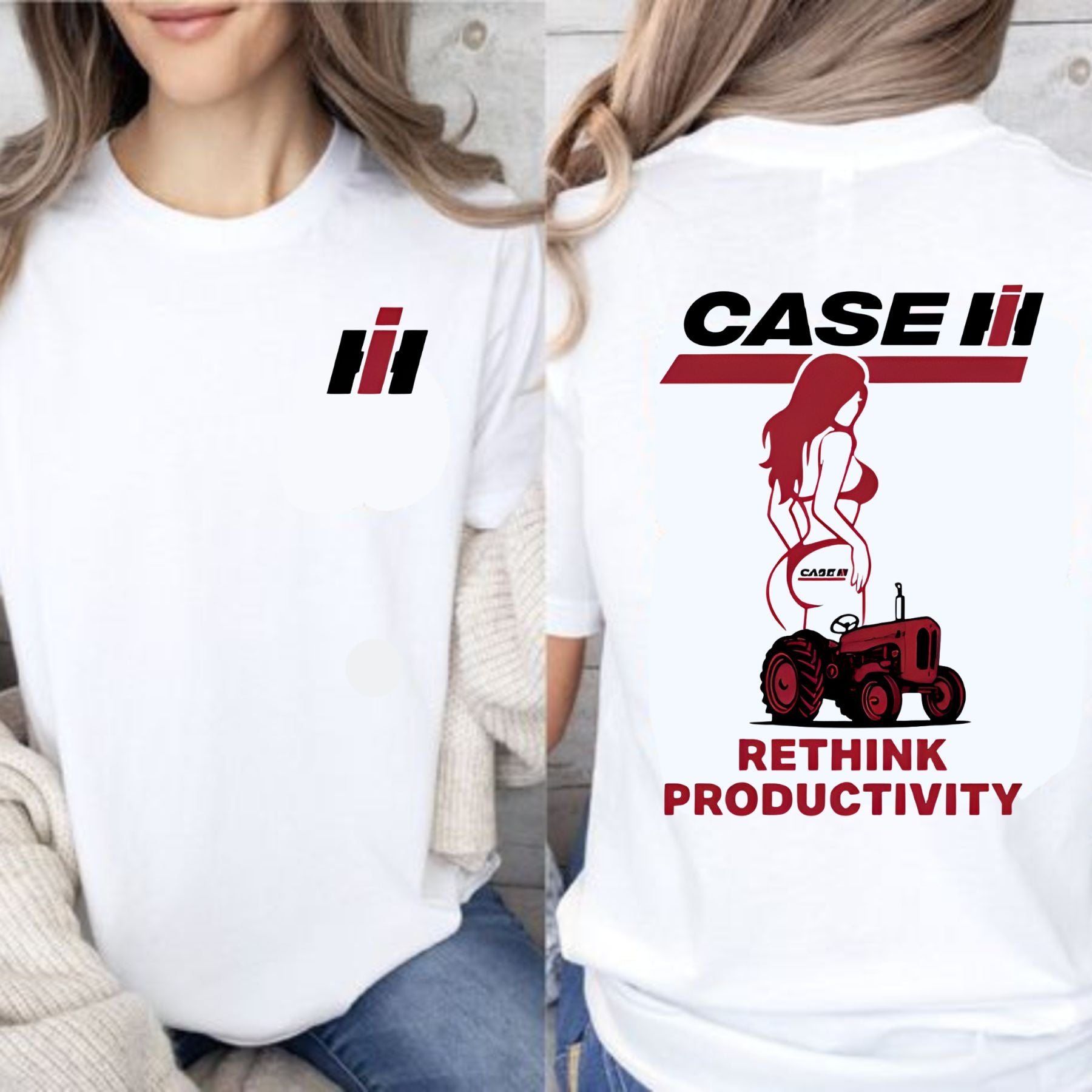 Case IH "Rethink Productivity" T-Shirt - Retro Tractor & Girl Graphic, Gift for Farmers