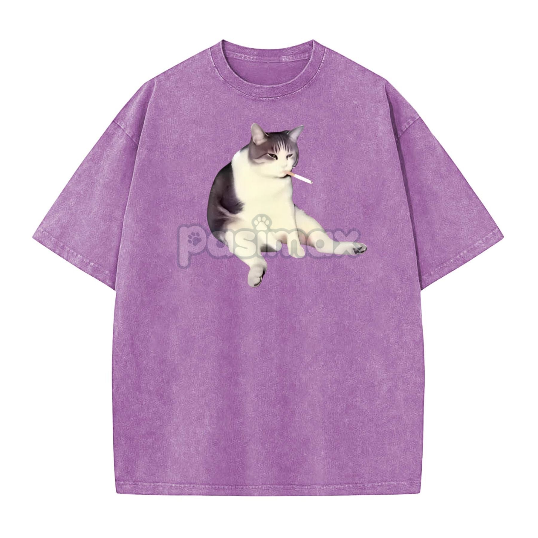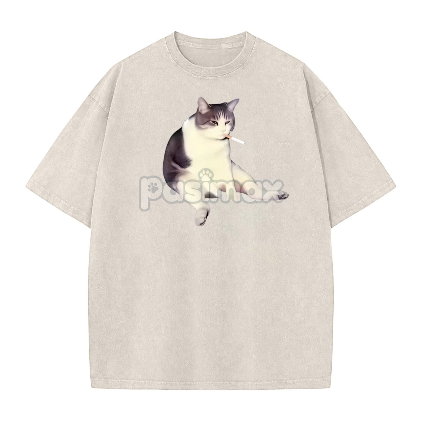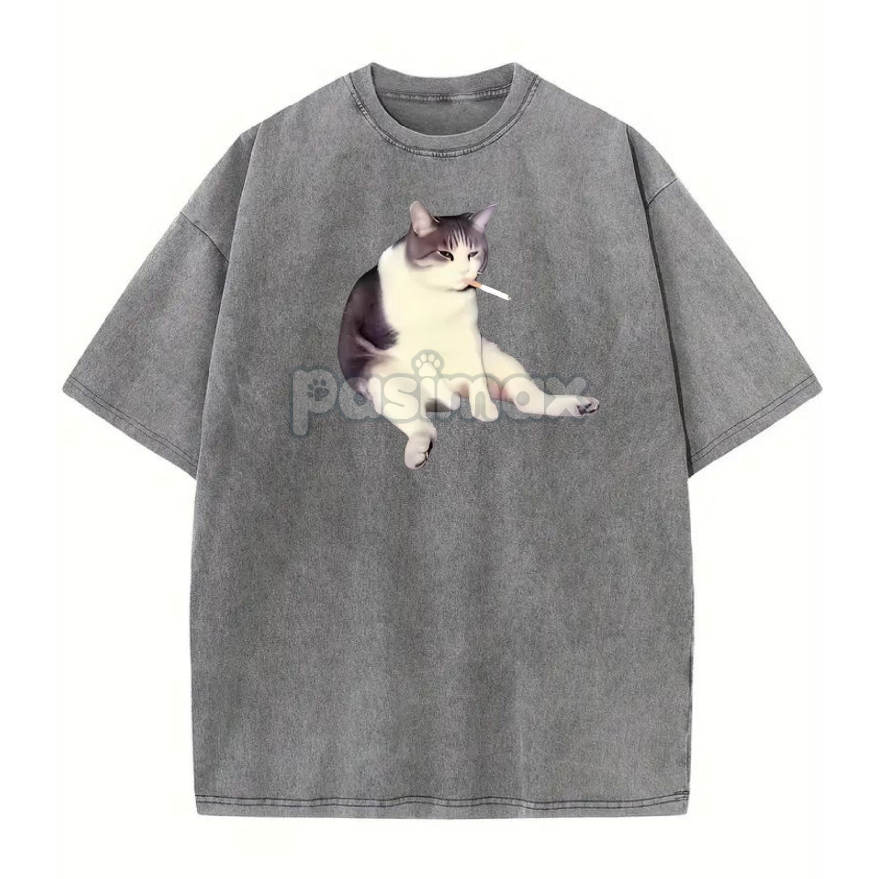 'Cat Smoke' Funny Animal Graphic Tee – Unisex Streetwear Cotton Comfort Shirt, Menswear Womenswear Cool Cat Tee