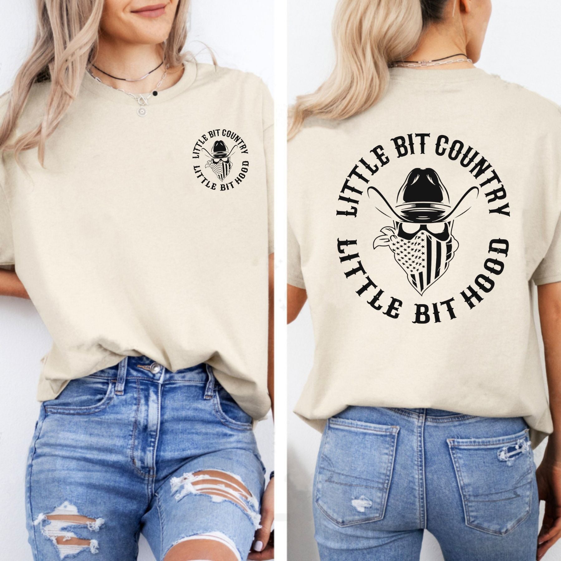 This "Little Bit Country Little Bit Hood" Black Short Sleeve T-Shirt is a must-have for those who can't be put in a box. This funny graphic tee is a bold statement about blending different worlds and rocking your own unique style. It's perfect for a day at the festival, a night out with friends, or just adding a little personality to your everyday look.