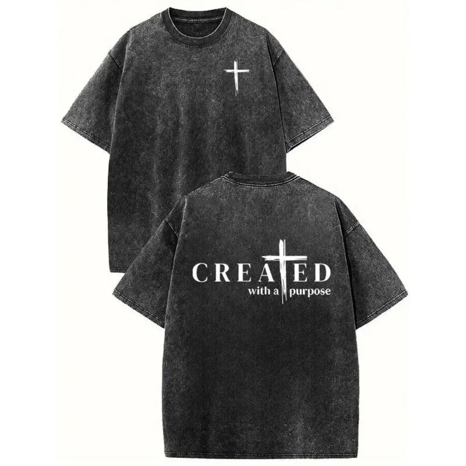 ✝️✨ More Than a Shirt. A Statement of Faith. Wear your purpose with pride with our "Created with a Purpose" Washed T-Shirt.