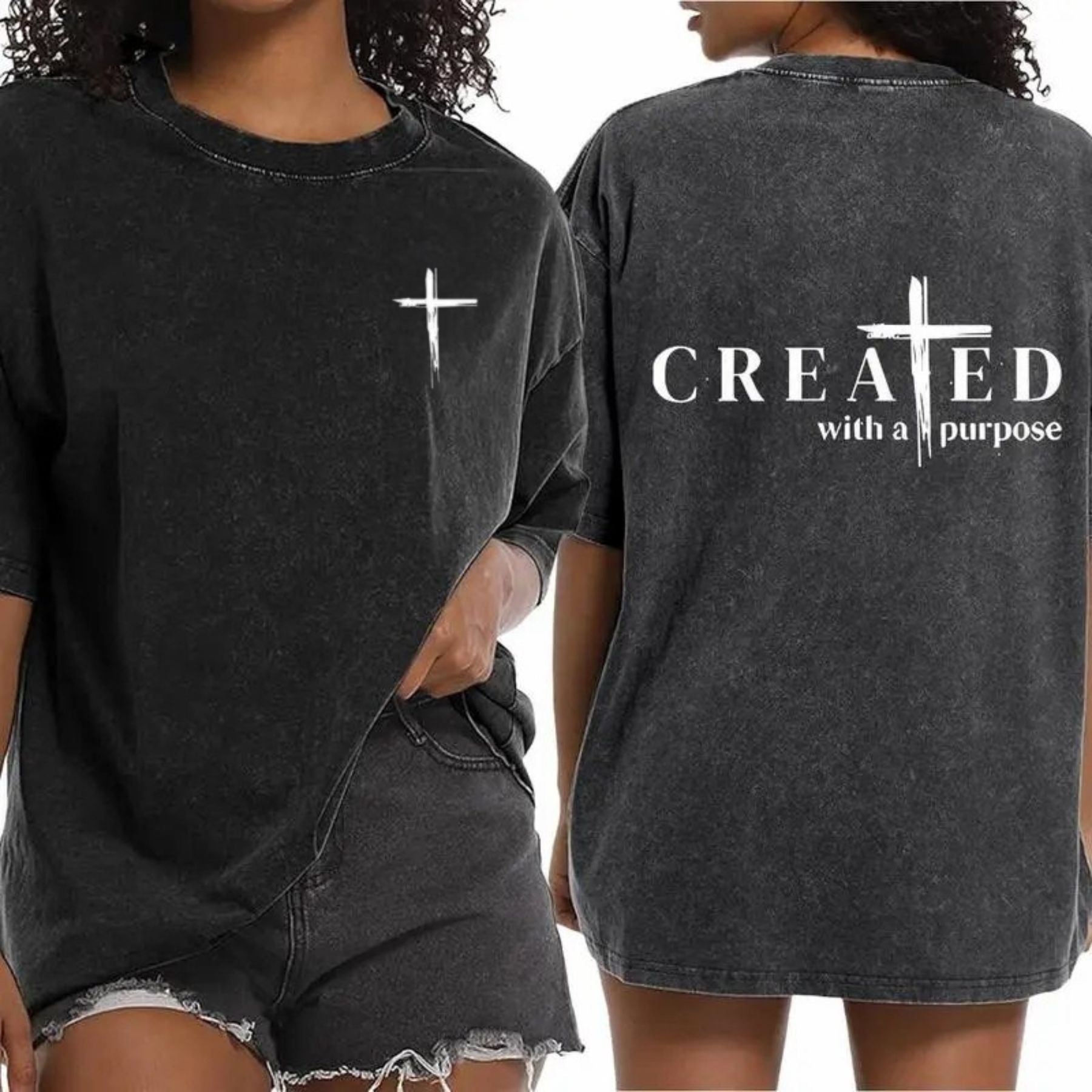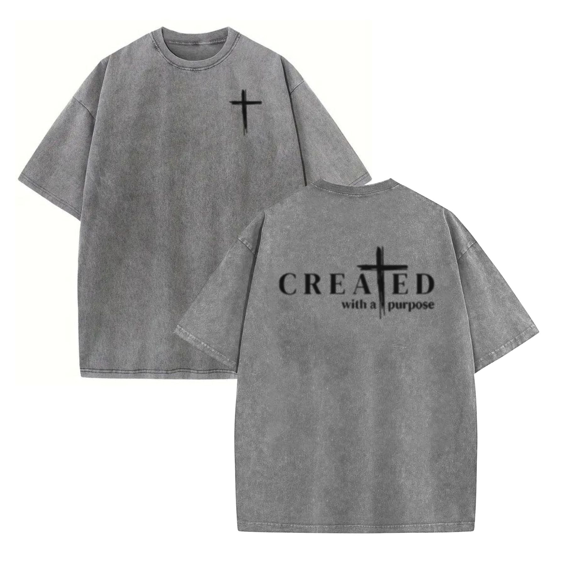 "Created with a Purpose" Washed T-Shirt – Christian Inspirational Tee, Vintage Comfort Top