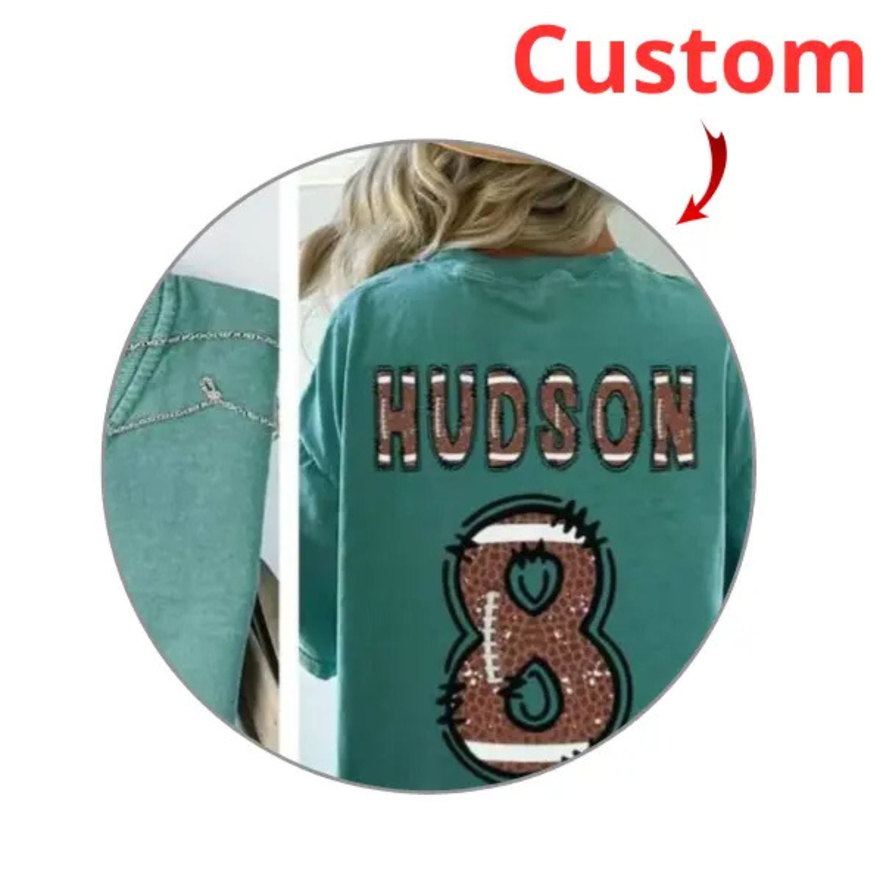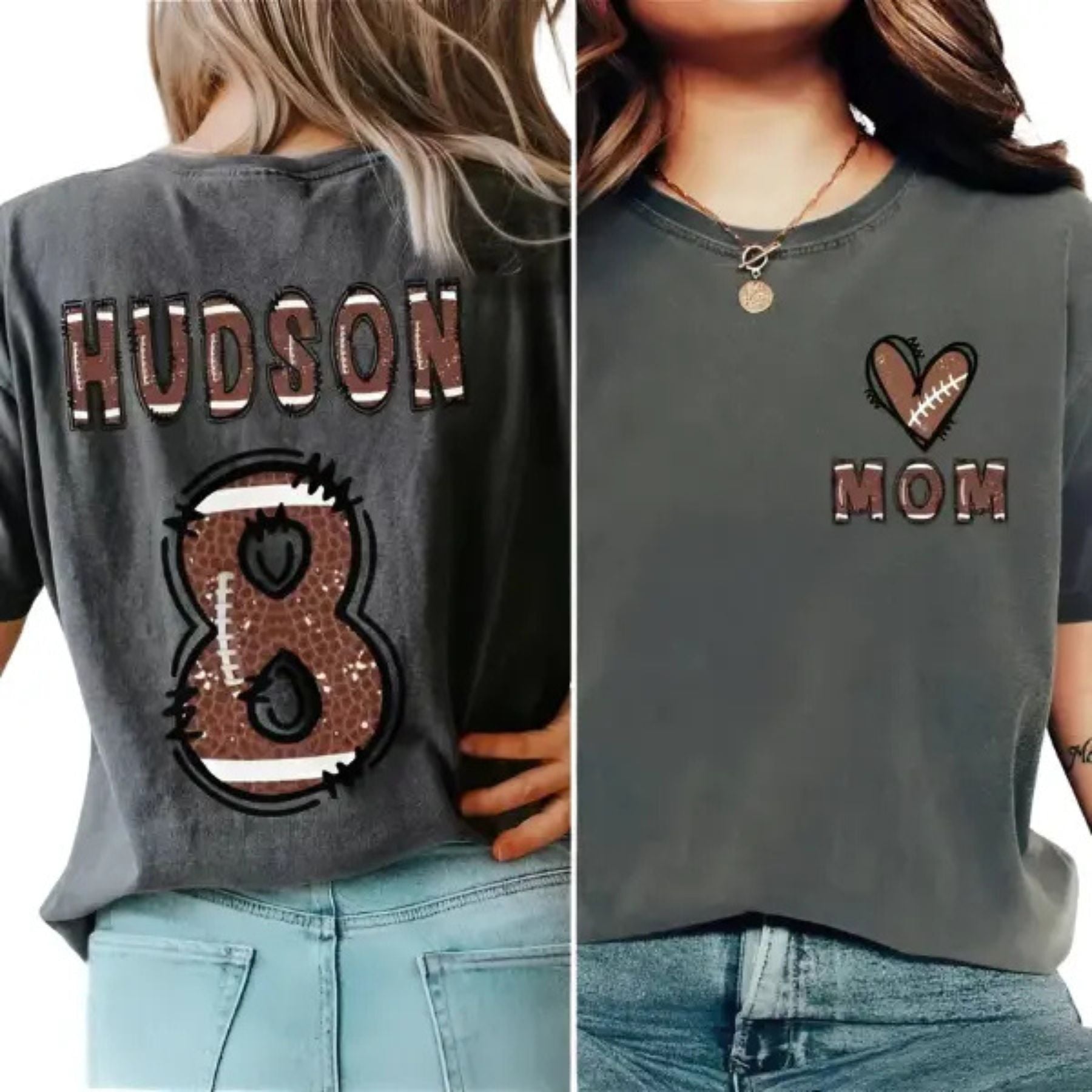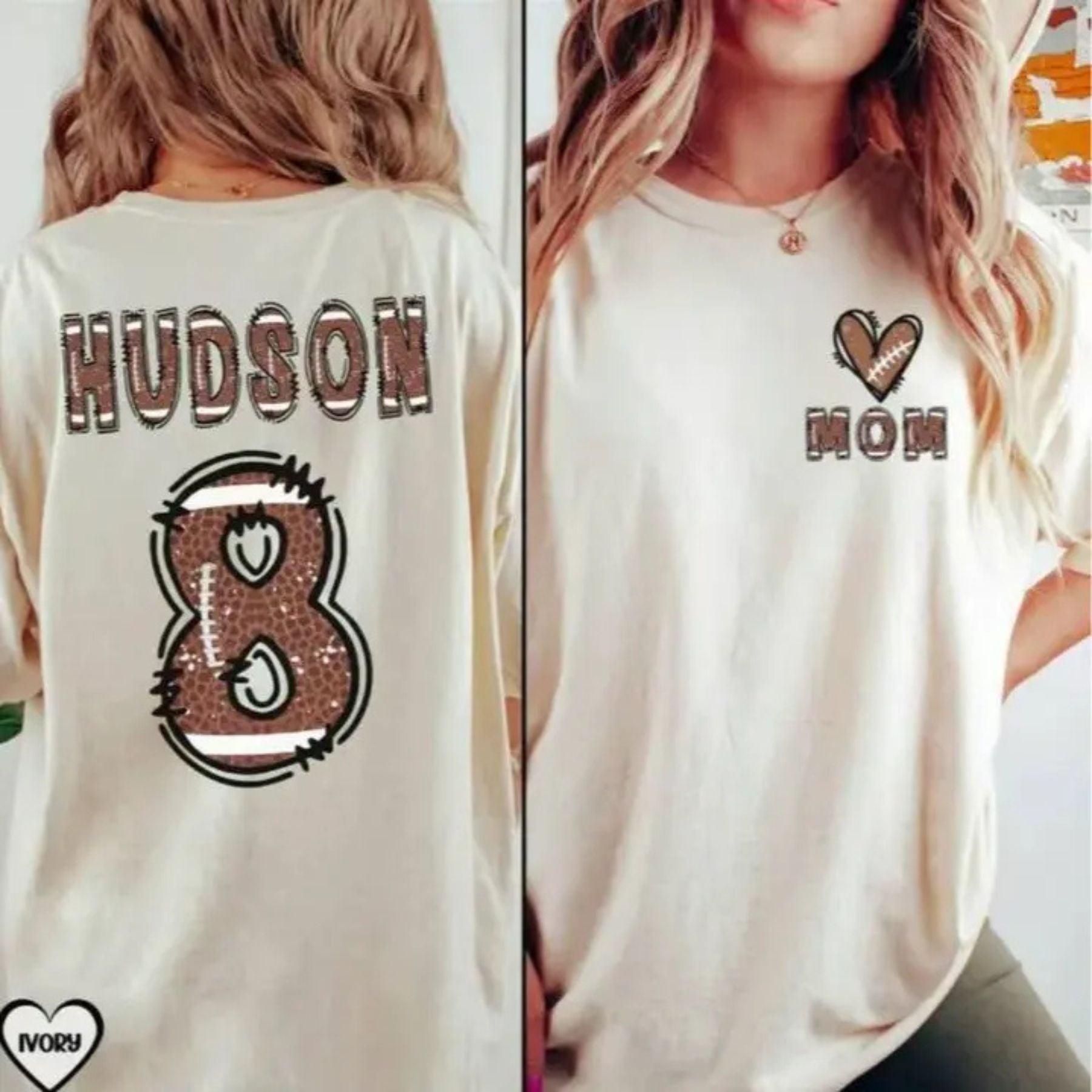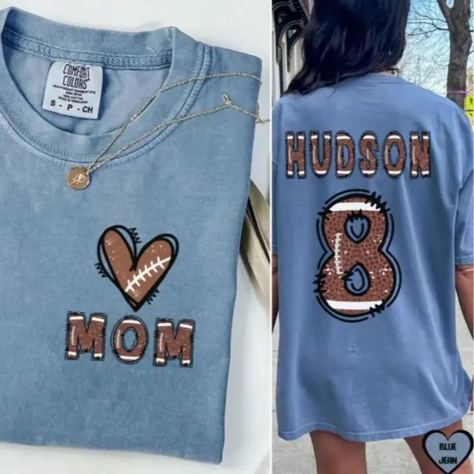 🏈💖 Cheer on Your Little All-Star in Style! Show your team spirit with our Custom Football Mom Shirt, a perfect tribute to the woman who cheers the loudest from the sidelines. This personalized tee is your go-to for game day, featuring a custom design with your kid's name and jersey number. It’s a stylish and heartfelt way to celebrate your little one's passion and your unwavering support.