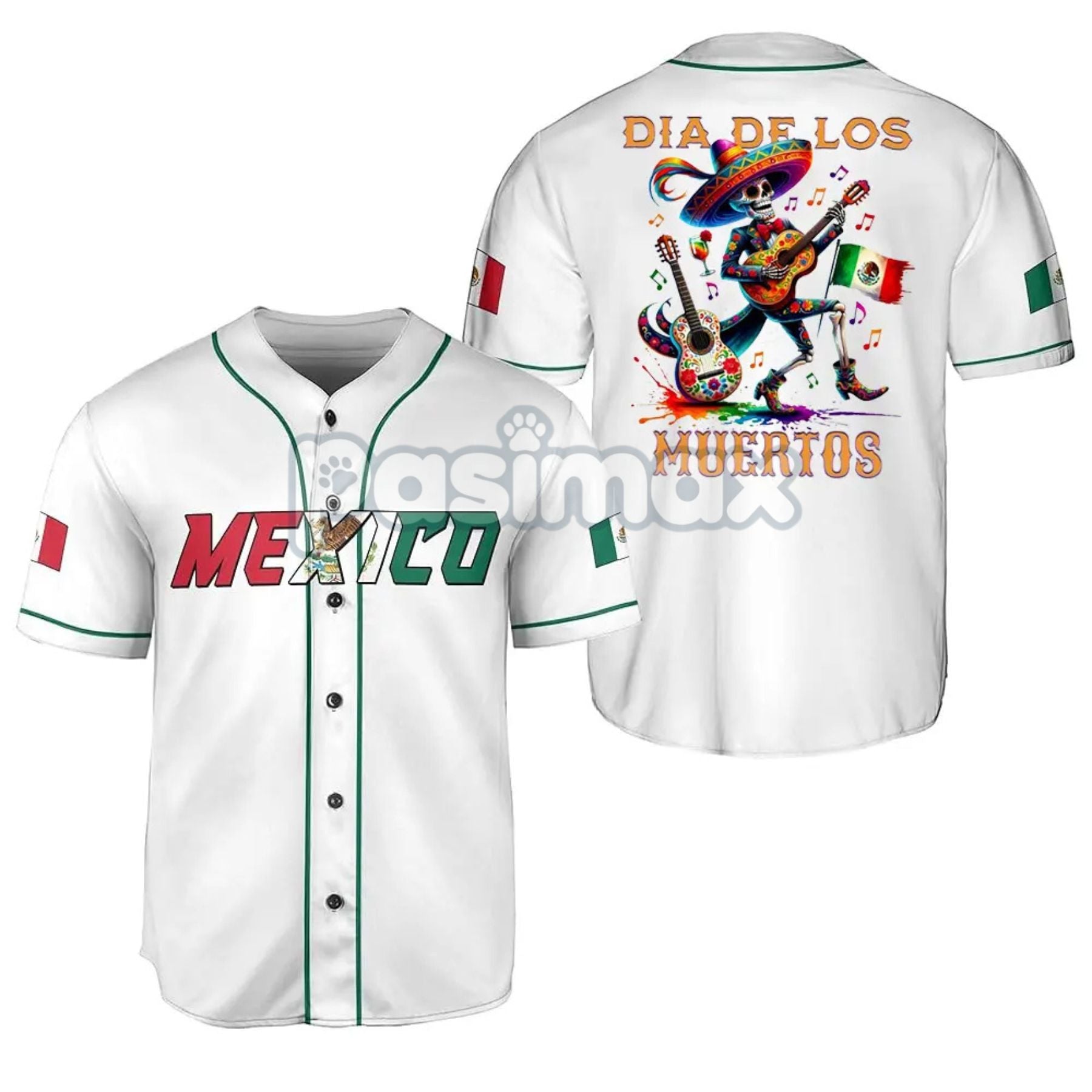 Honor the rich culture of Día de los Muertos with this Mexico Day of the Dead Baseball Jersey. Featuring a striking skeleton guitar design, this jersey blends traditional Mexican artistry with modern streetwear flair. Whether you’re hitting a festival, honoring heritage, or just upgrading your wardrobe with bold graphic style, this jersey makes a statement.