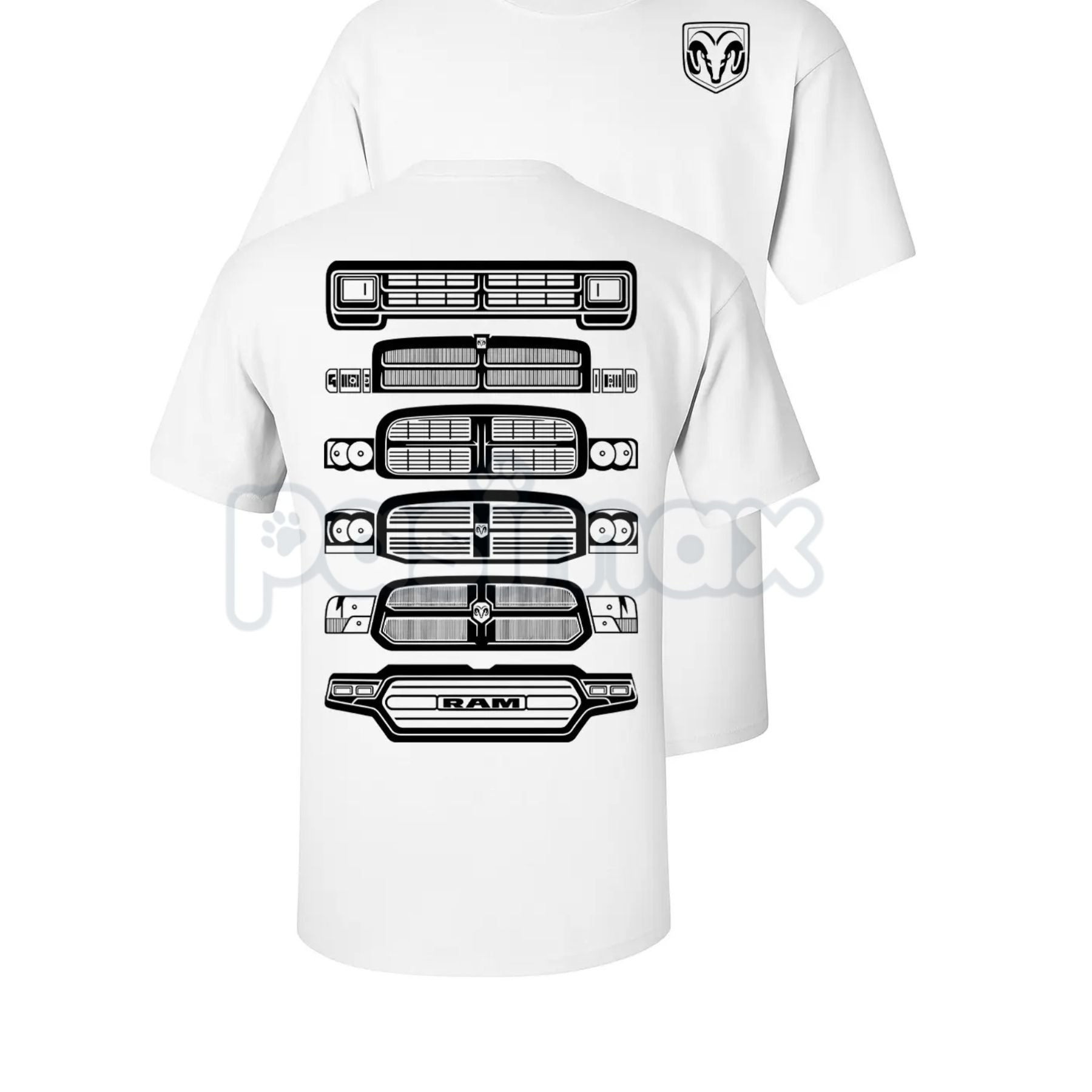Dodge Ram Evolution Grille T-Shirt - Vintage Truck History Graphic Tee, Ram Owner Gift, Mopar Enthusiast Apparel