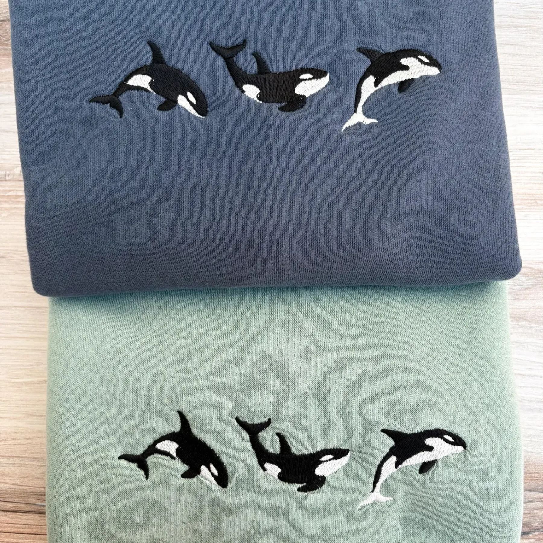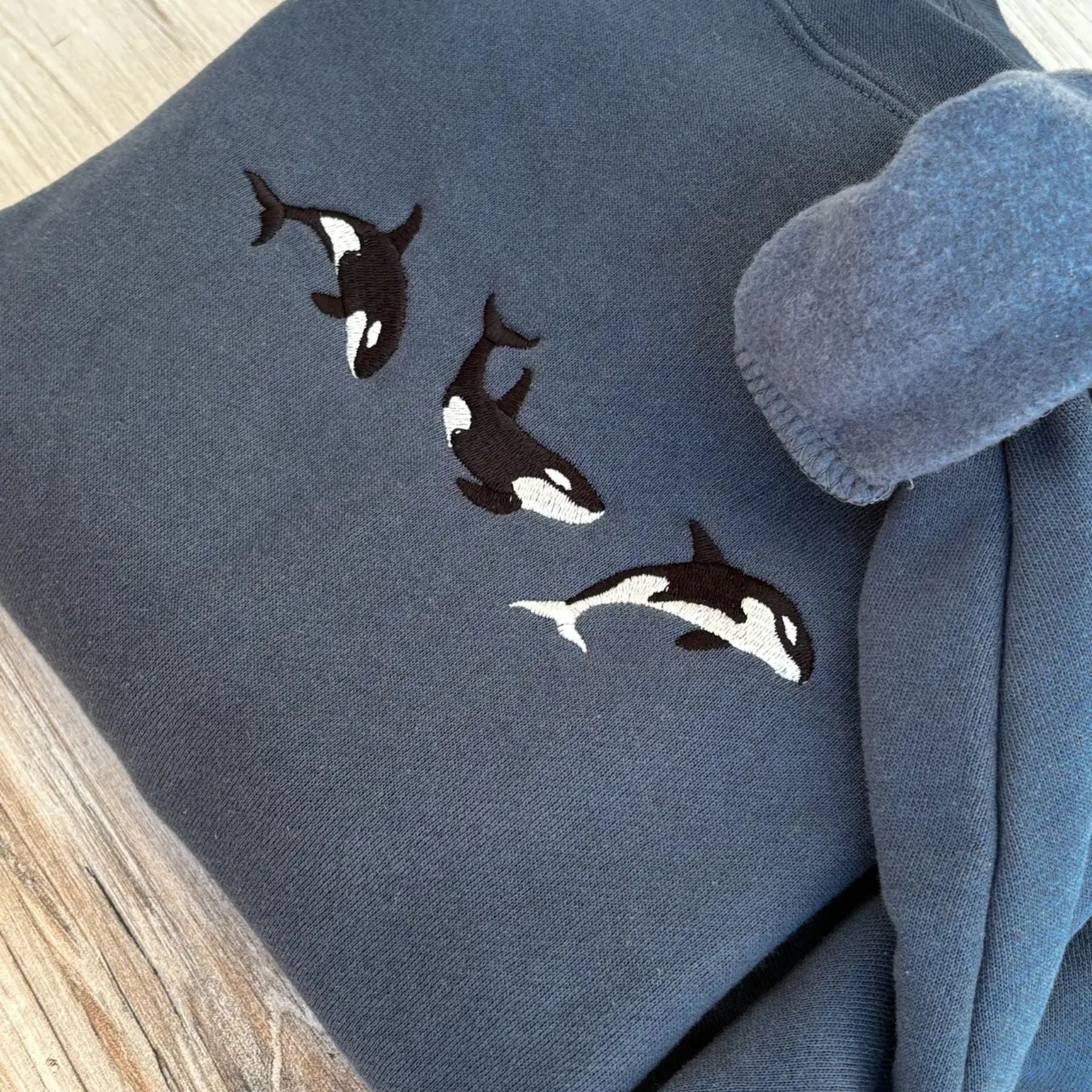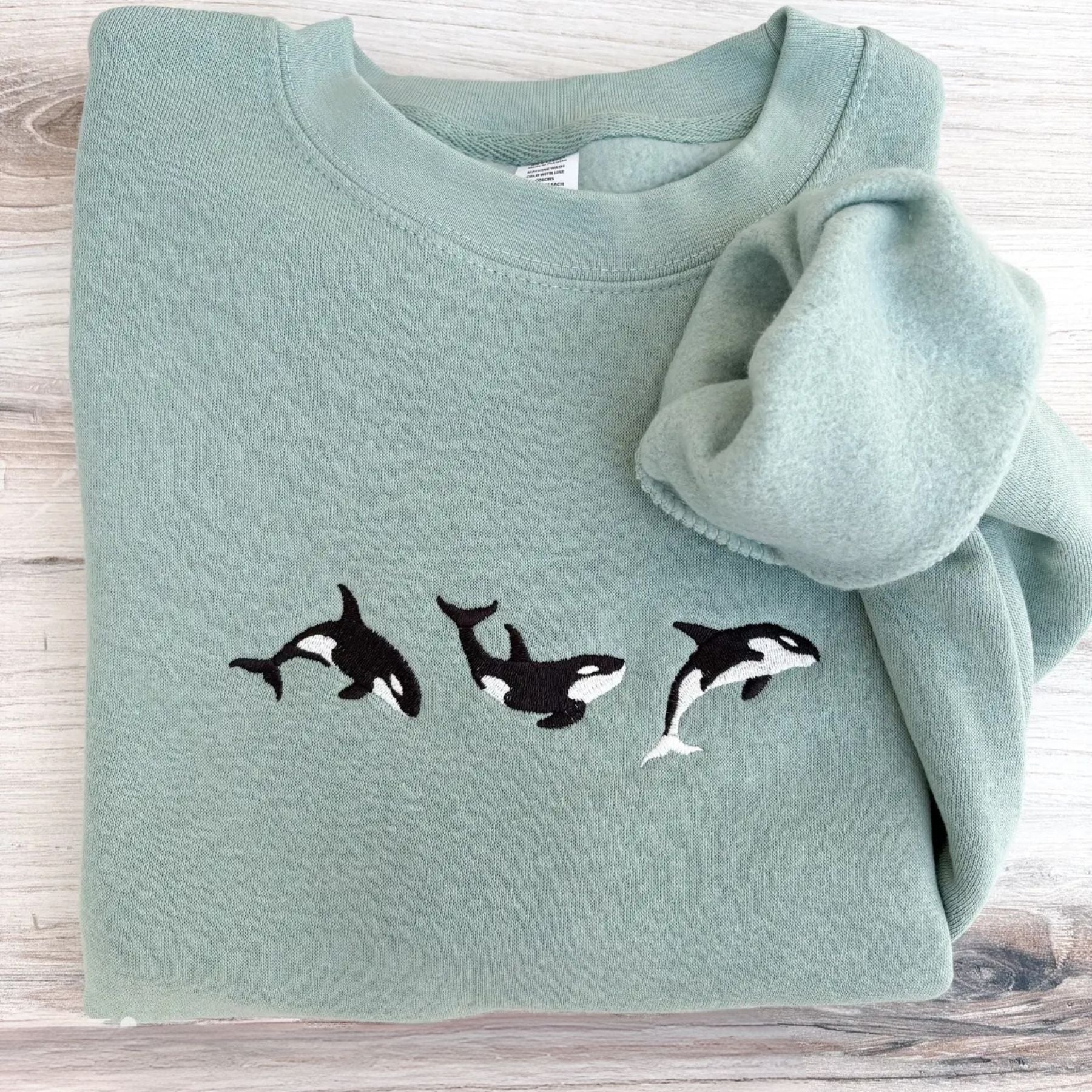 Embroidered Orca Sweatshirt – Ocean Lover's Crewneck, Killer Whale Apparel