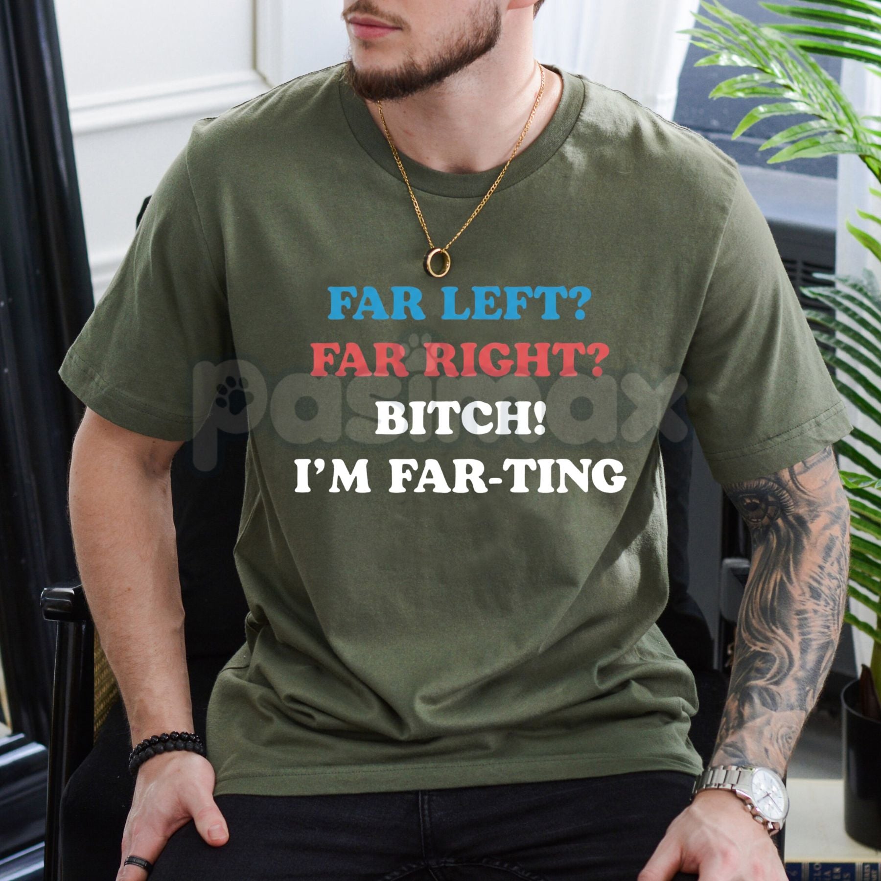 "Far Left Far Right Bitch I’m Farting" T-Shirt - Funny Unhinged Meme Graphic Tee, Cringe Culture Humor Apparel, Ironic Political Satire Shirt
