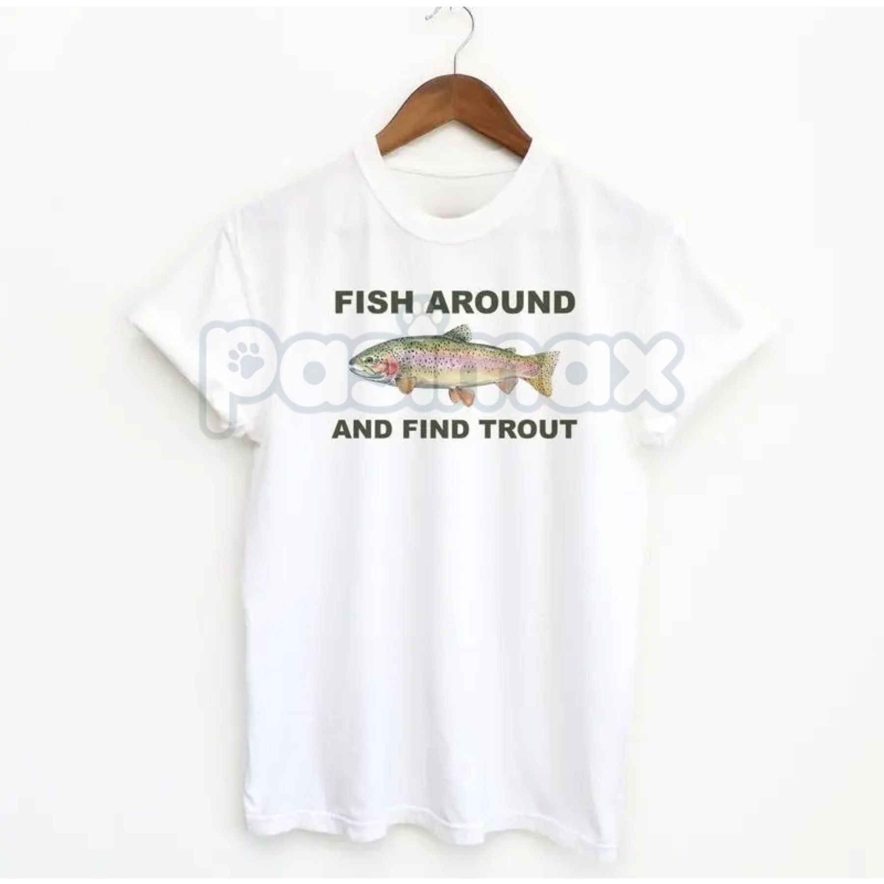 "Fish Around and Find Trout" T-Shirt - Funny Fishing Pun Graphic Tee, Angler Humor Apparel, Fly Fishing & Trout Slogan Shirt