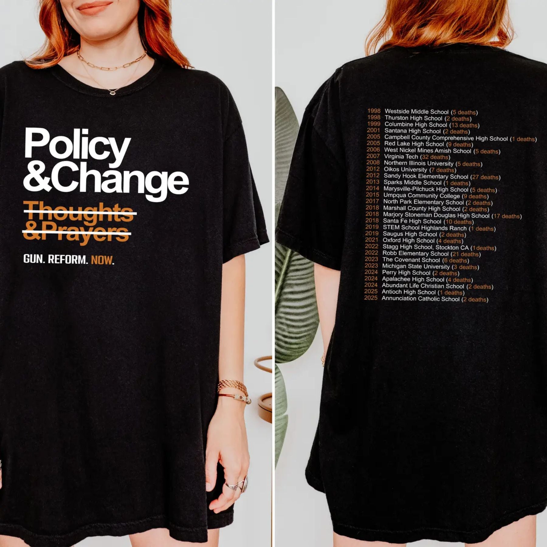 "Policy & Change" Gun Reform T-Shirt - "Thoughts and Prayers" Slogan Tee, Political Activist Apparel