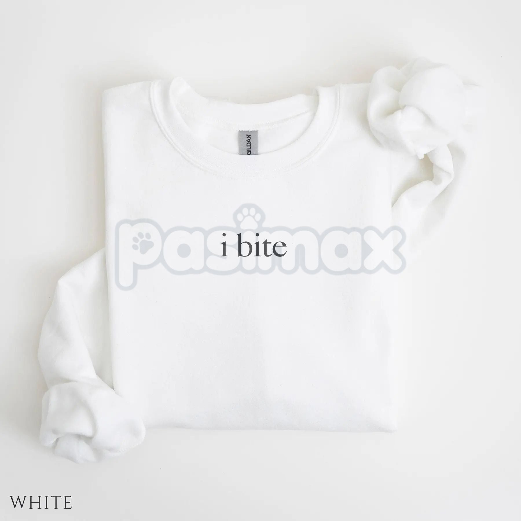 I Bite Sweatshirt | Funny Unhinged Sarcastic Meme Sweater | Quirky Antisocial Jumper | Viral Humor Gift