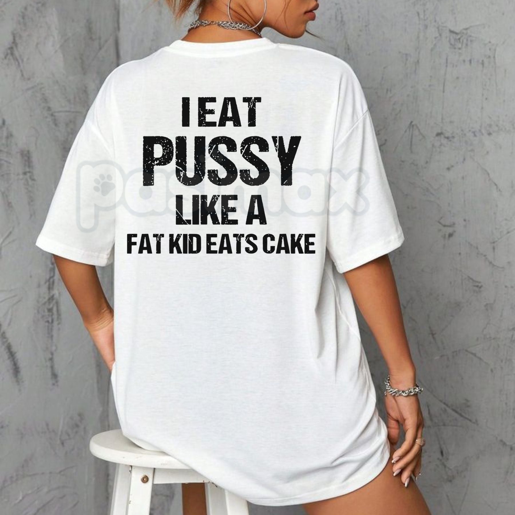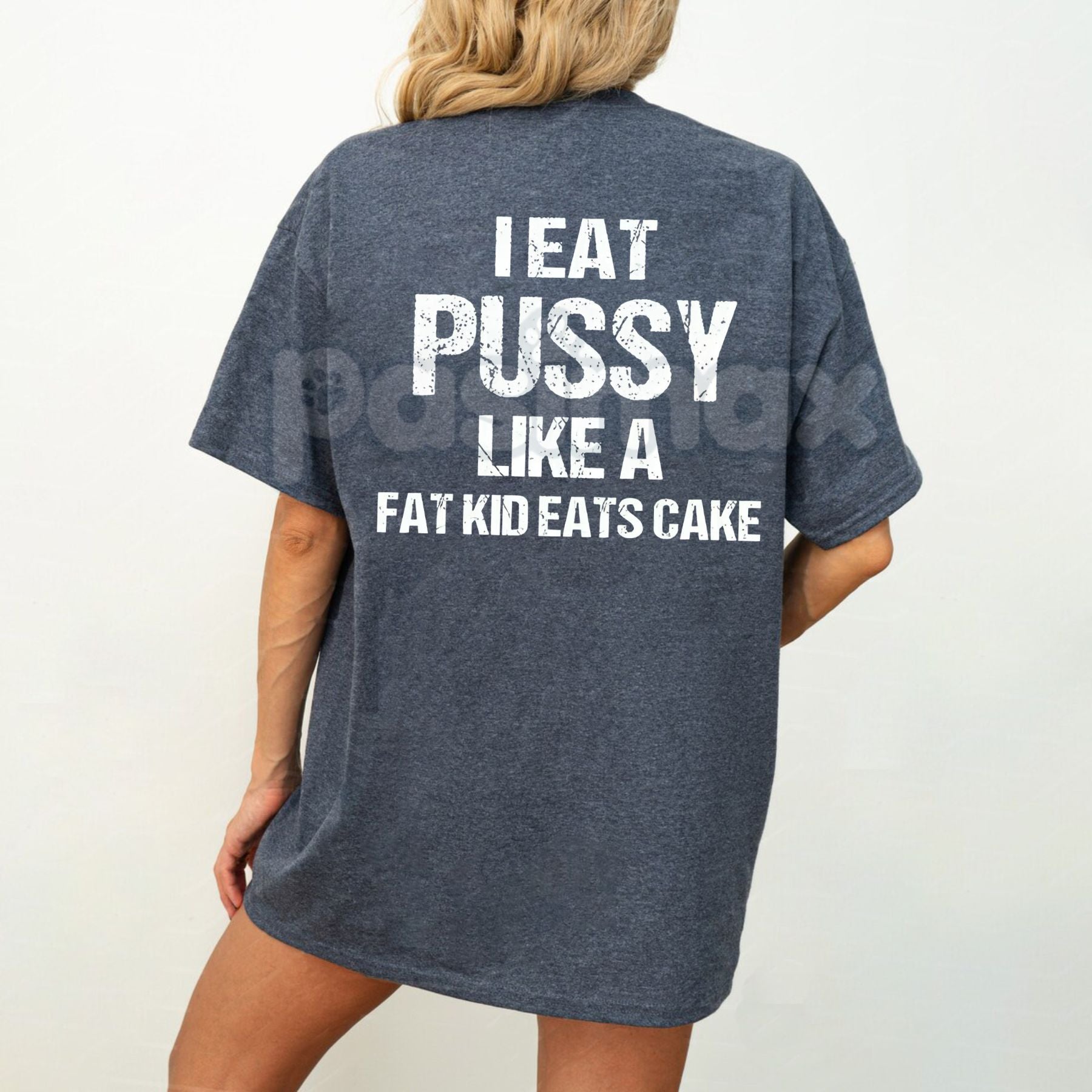 "I Eat Pu**y Like A Fat Kid Eats Cake" T-Shirt - Crude Adult Humor Tee, Explicit Shock Slogan Shirt, Basic Cotton Crewneck Statement Apparel