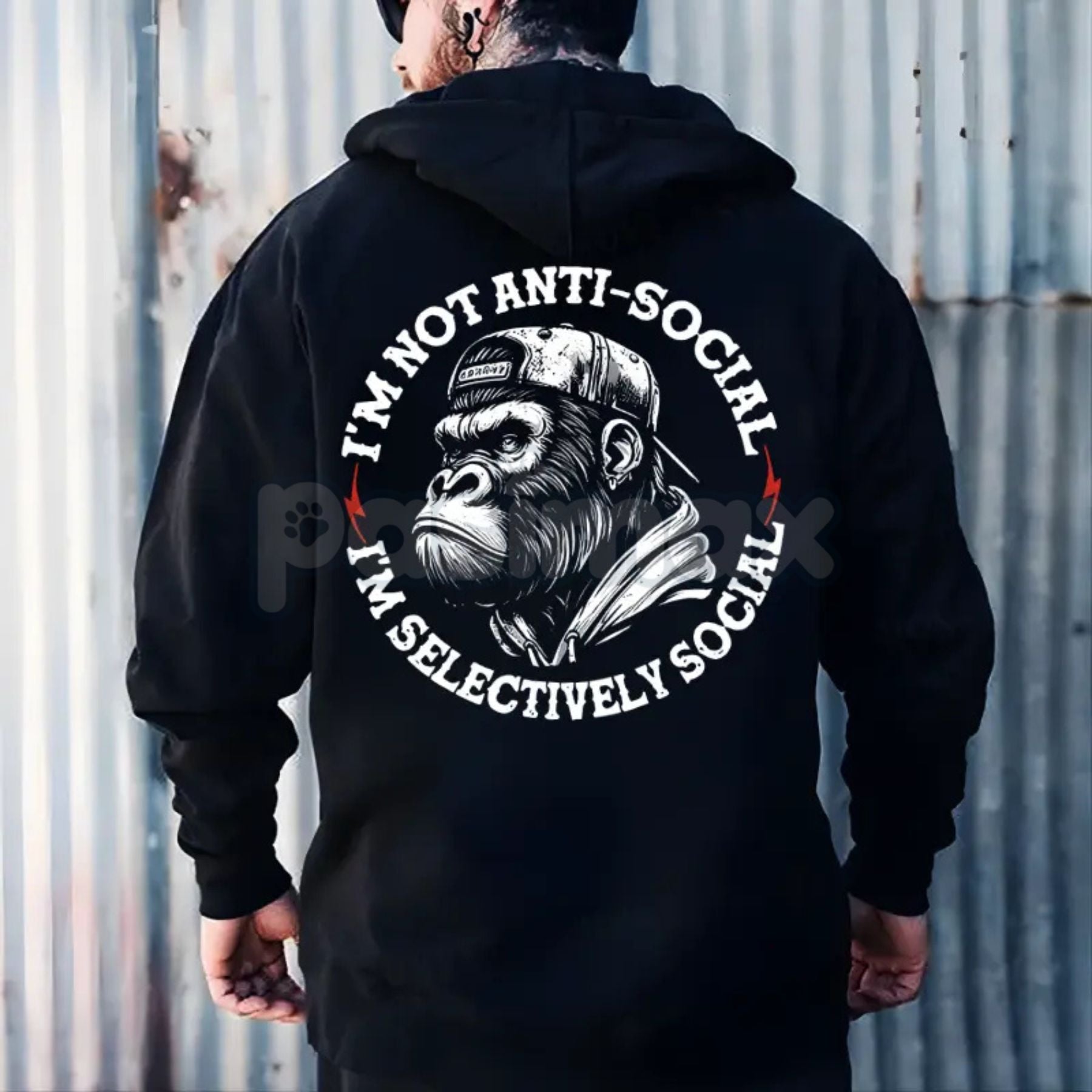 "I’m Not Anti-Social I’m Selectively Social" Printed Men's Hoodie – Introvert Statement Pullover, Funny Slogan Apparel, Unisex