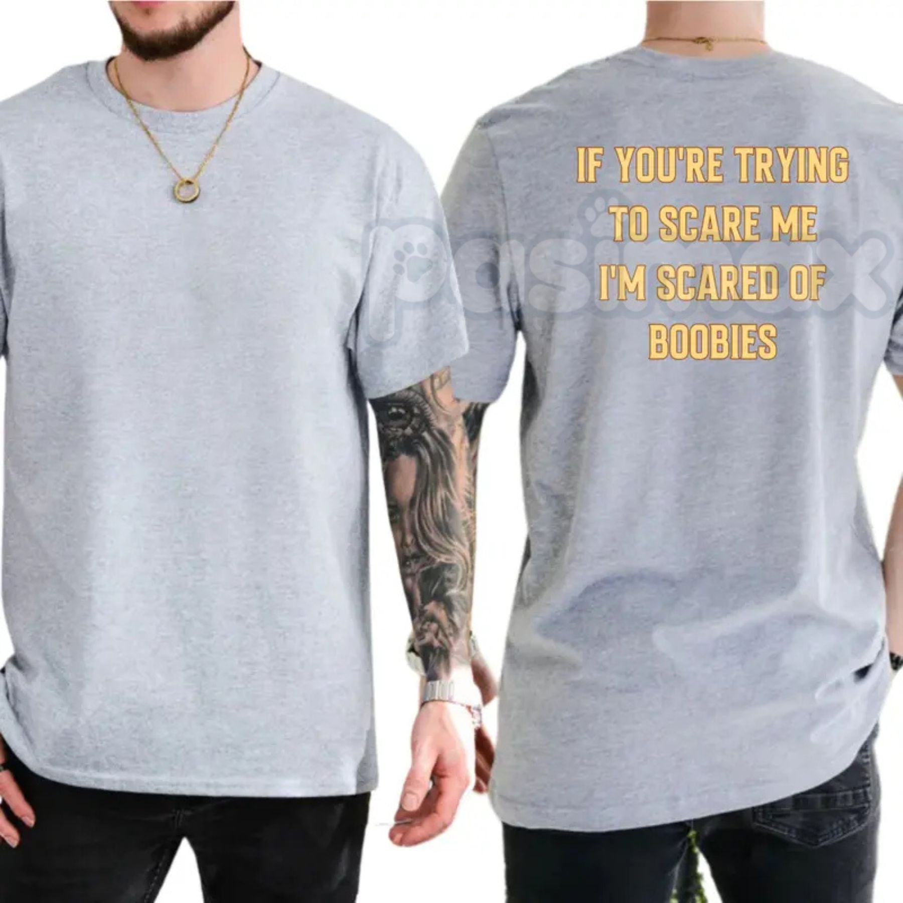 "I'm Scared Of Boobies" Funny Men’s T-Shirt - Ironic Adult Humor Graphic Tee, Premium 100% Cotton Sarcastic Men's Gift, Witty Joke Gag Shirt for Guys, Soft Lived-In Heavyweight Casual Menswear, Funny Statement Party Top