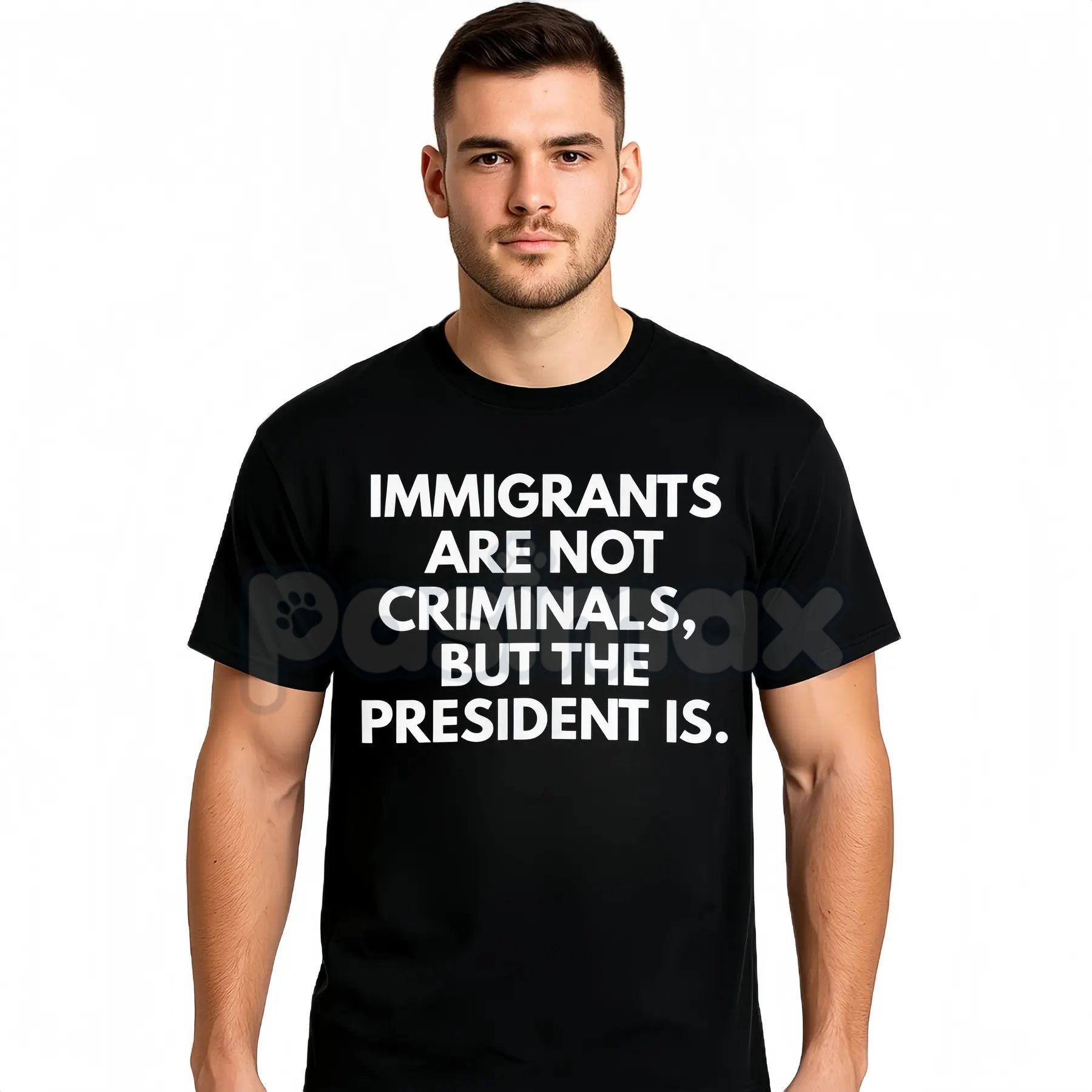 "Immigrants Are Not Criminals But The President Is" T-Shirt - Funny Political Protest Slogan Tee, Activist Graphic Apparel, Unisex Social Justice Shirt