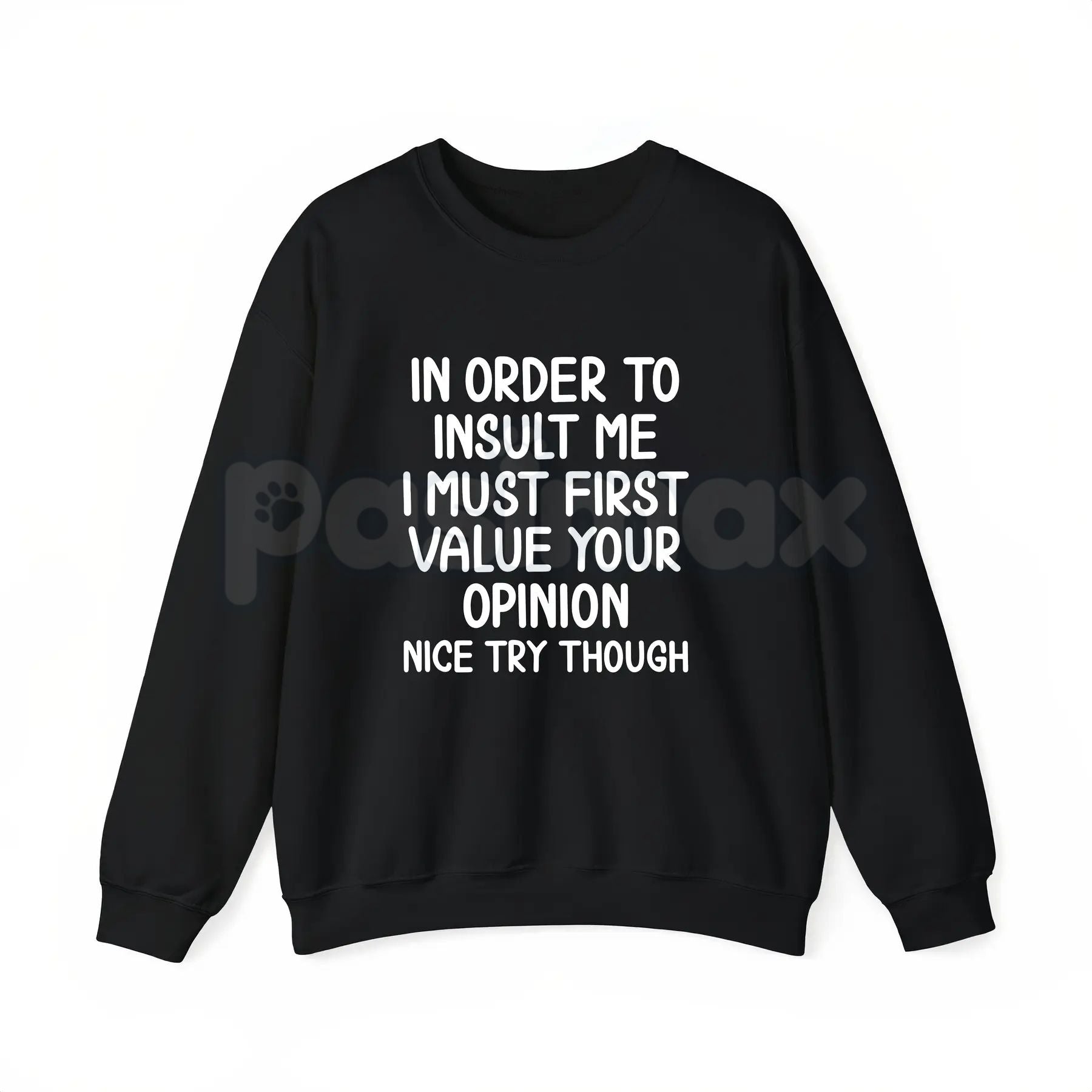 Unbothered. Unfazed. Unmatched. Set the record straight without saying a word with our "In Order To Insult Me, I Must First Value Your Opinion" collection. This design is the ultimate power move for anyone who has mastered the art of protecting their peace and ignoring the noise.