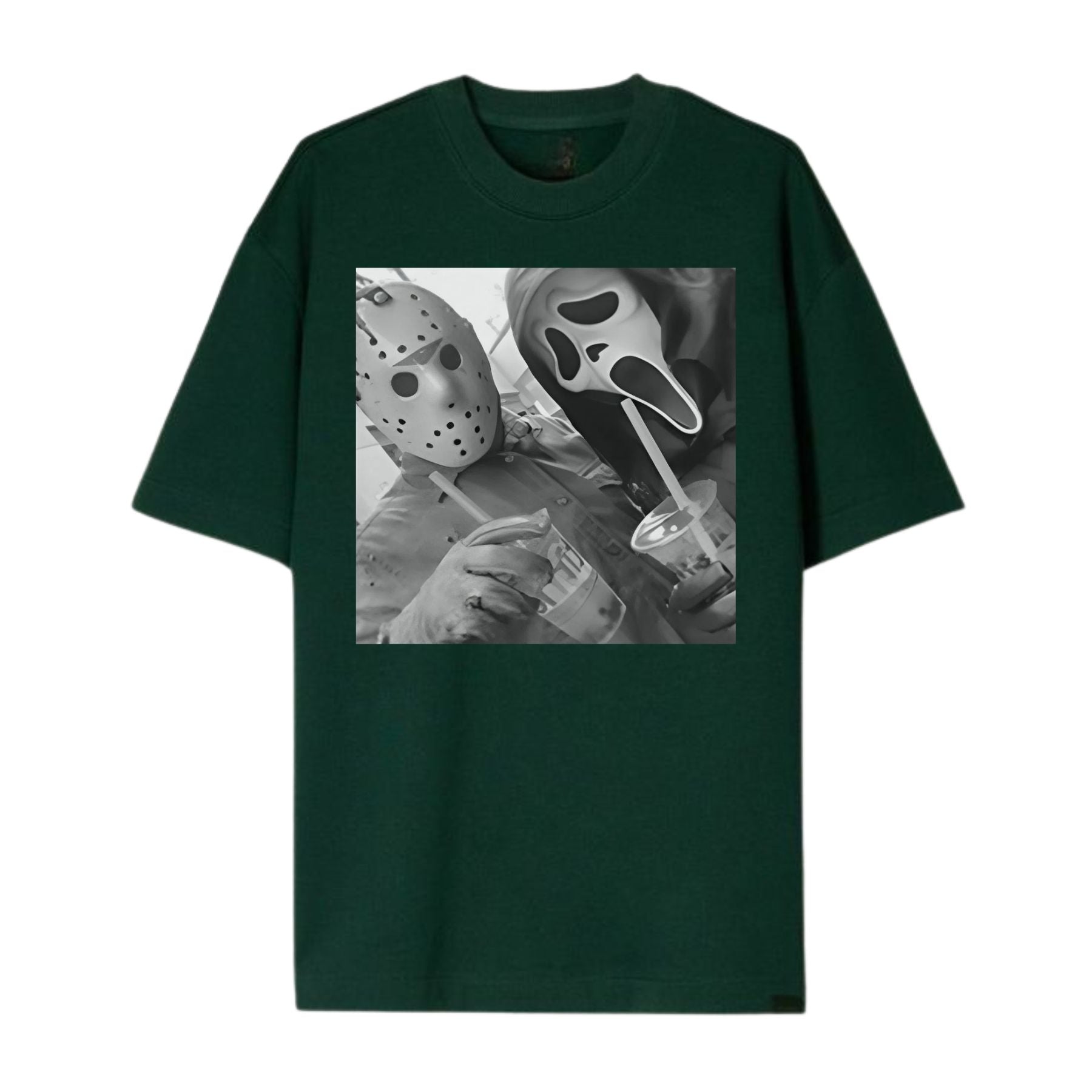 🔪👻 The Ultimate Spooky Crossover Tee. Get ready for a double dose of horror and humor with the JASON & GHOSTFACE T-Shirt! This isn't your average scary movie shirt—it's a nostalgic throwback to the Y2K and 90s era, featuring two of the most iconic slashers in a funny, graphic design. Perfect for Halloween parties, horror movie marathons, or just showing off your unique sense of style.