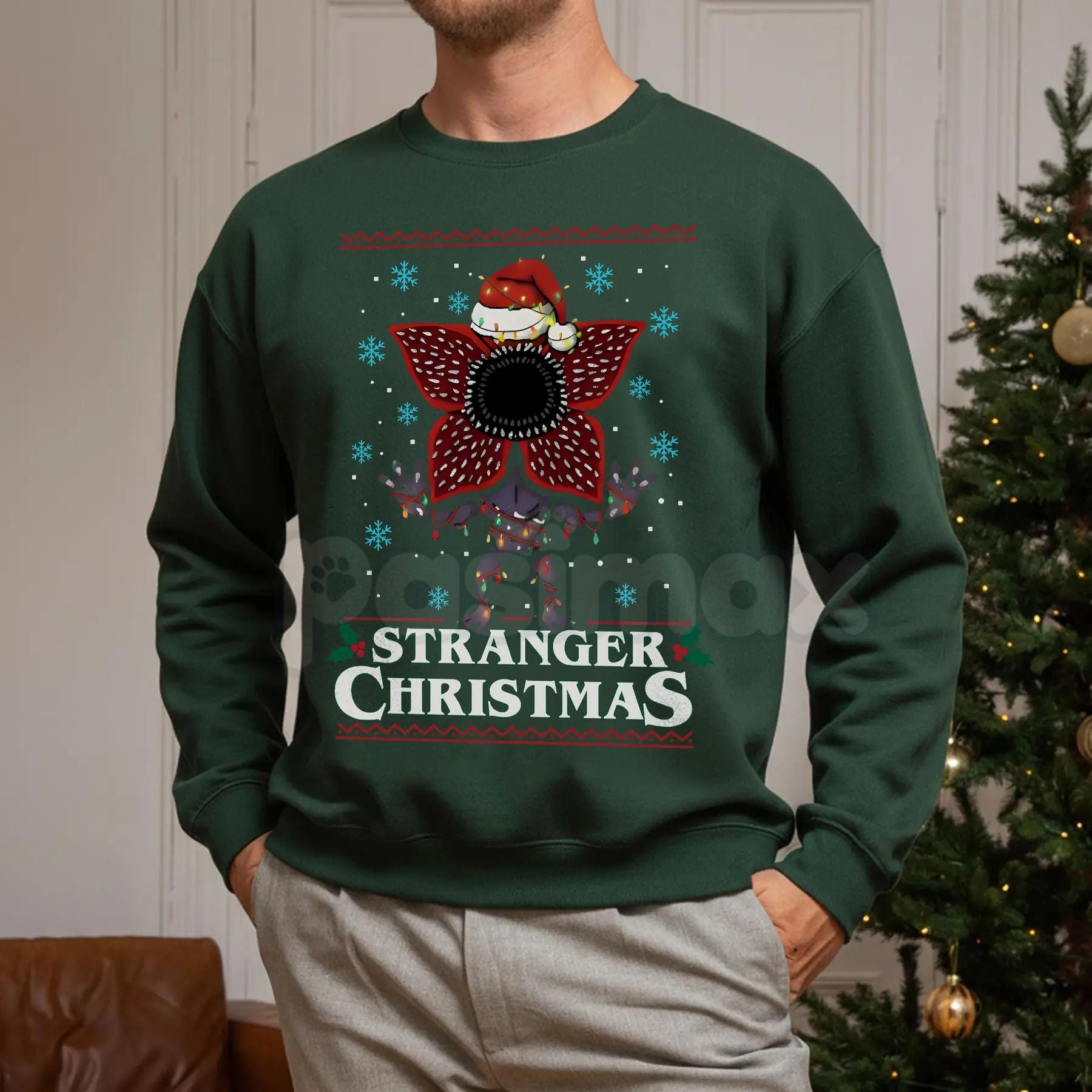 Stranger Christmas Sweatshirt | Merry Upside Down Xmas Jumper | Retro 80s Sci-Fi Holiday Crewneck | Hawkins Christmas Gift