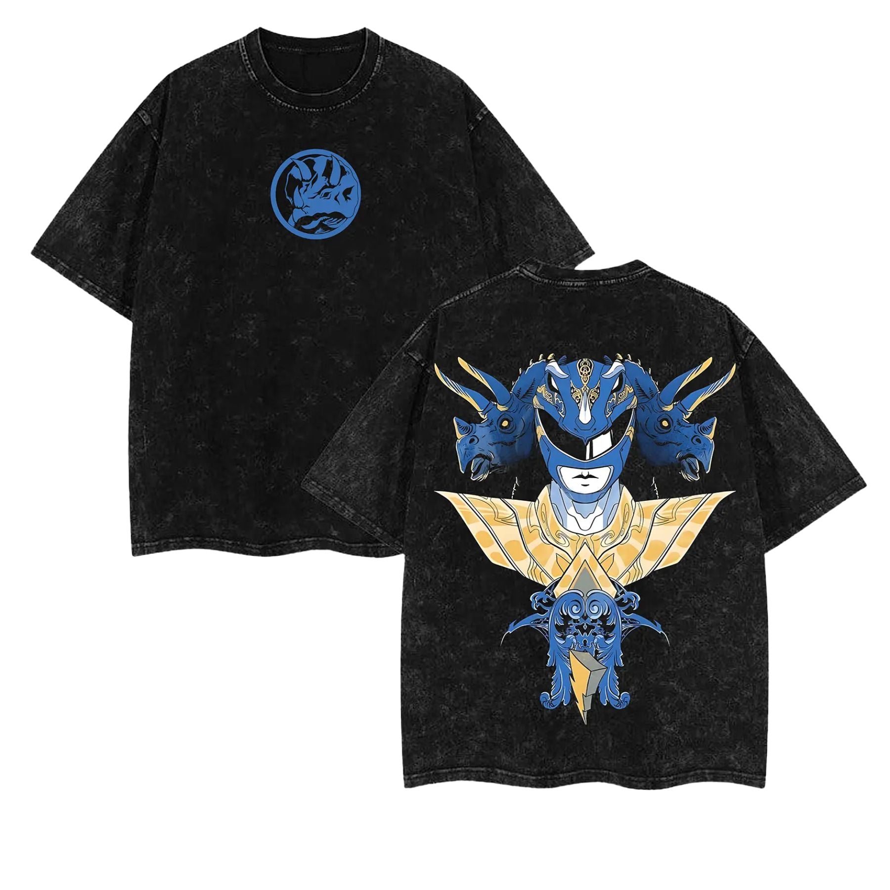 Mighty Morphin Power Rangers T-Shirt – Green, White, Red Ranger Washed Cotton Tee