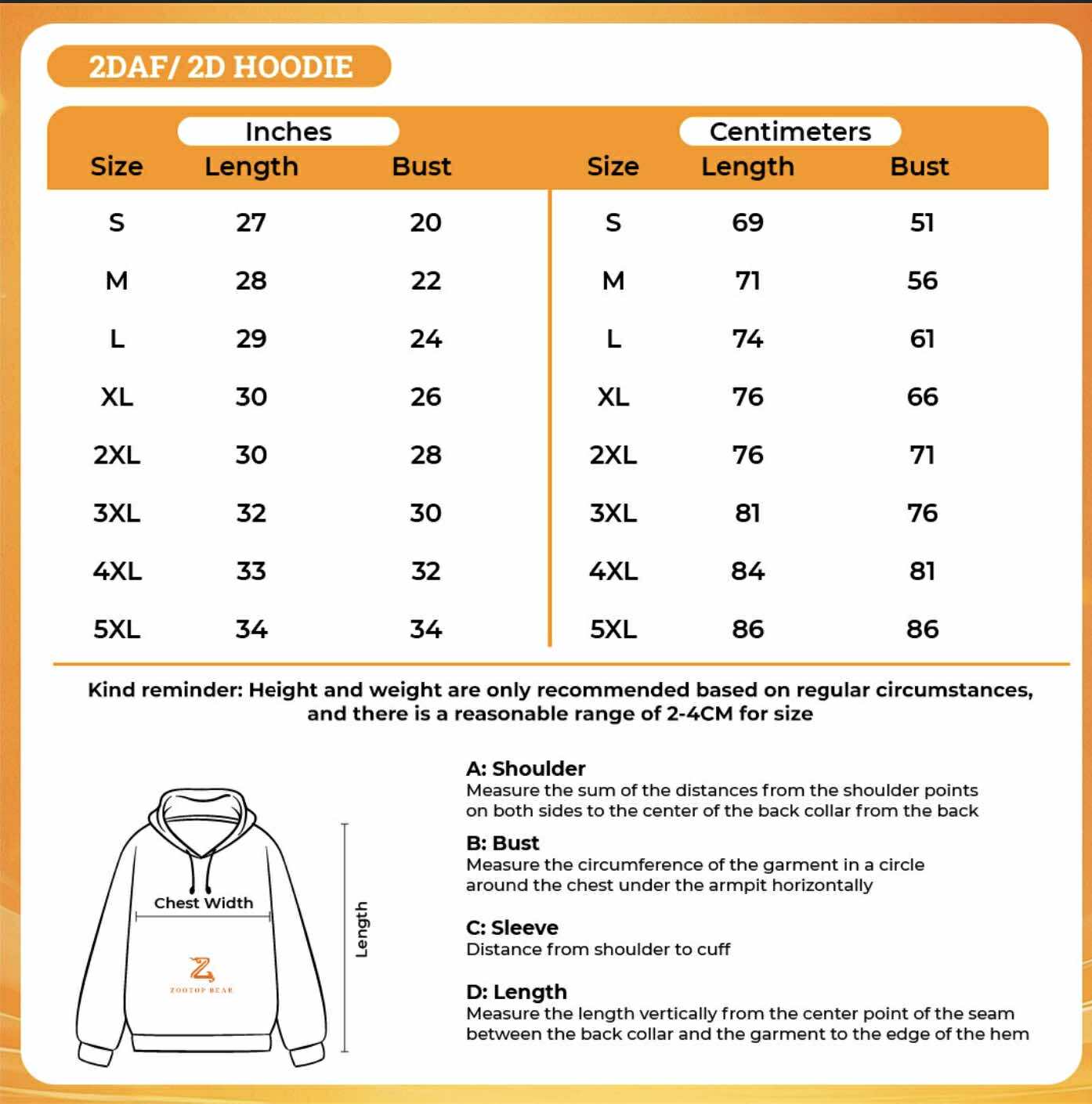 Our size go up to 5XL for sweatshirts, hoodies and T-shirts.