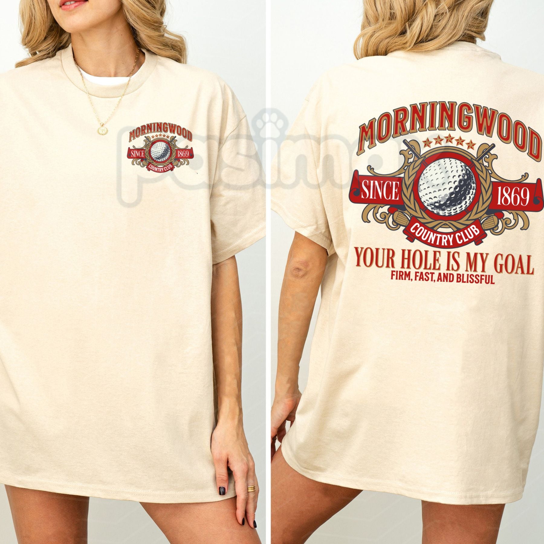 Early to rise, early to drive. Our "Morningwood Country Club" T-Shirt features a sophisticated, vintage-inspired crest that looks like a prestigious club logo at first glance—but reveals a legendary joke upon further inspection. It’s the perfect blend of athletic aesthetic and locker-room humor. Whether you're slicing balls into the woods or just grabbing a beer with the guys, this tee offers a relaxed, confident look for the man who knows that the best part of golf is the laughs along the way.