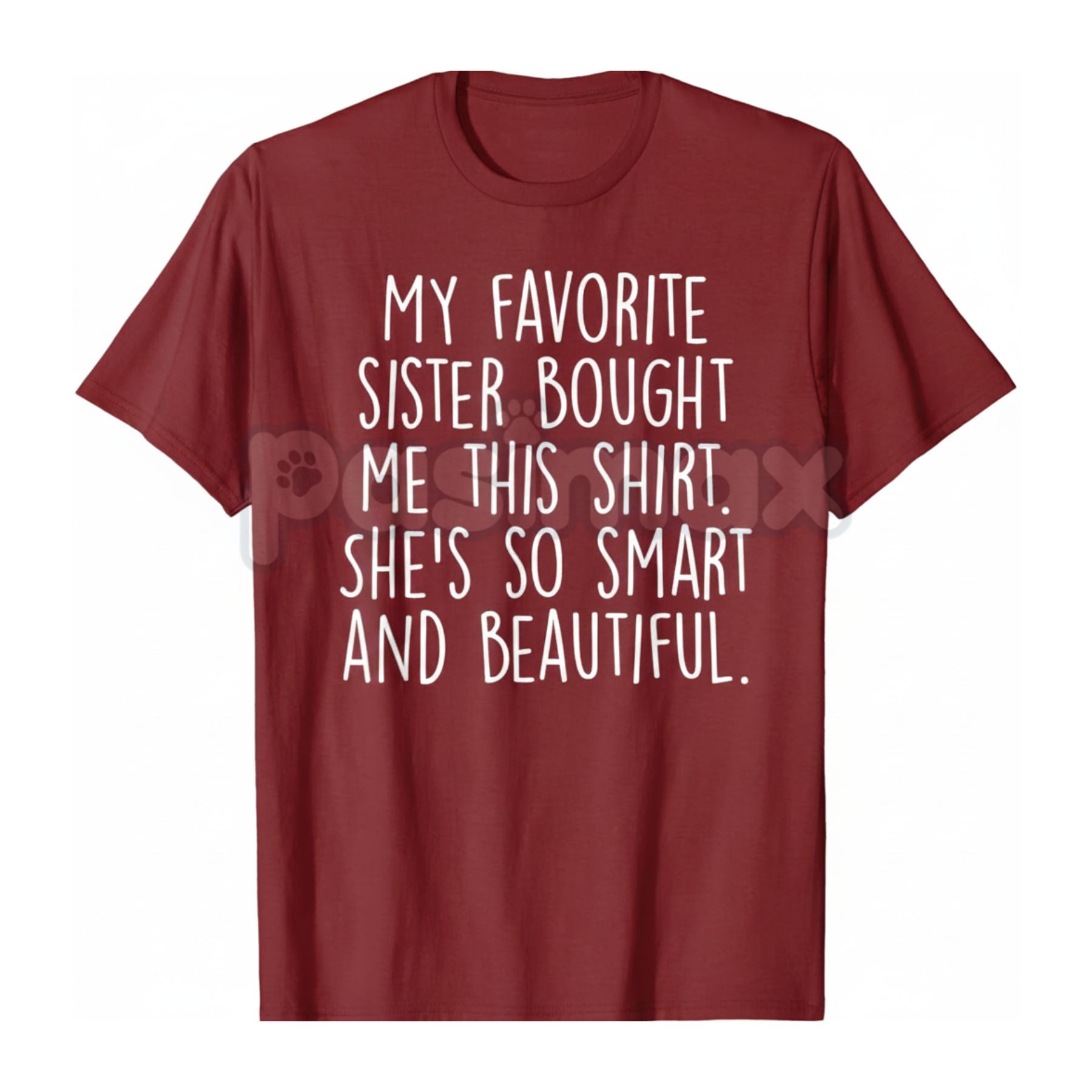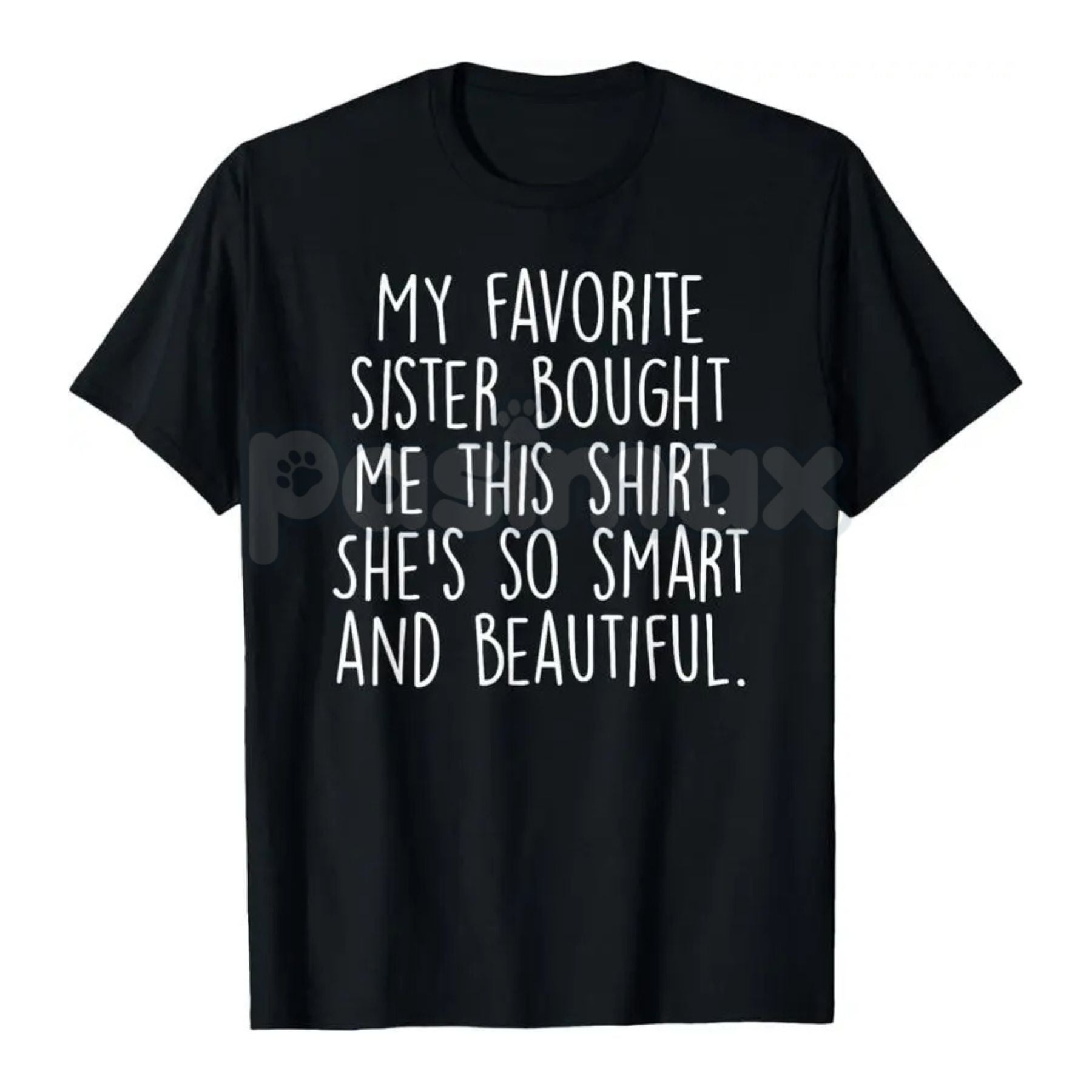 "My Favorite Sister Bought Me This" Funny Brother Gift T-Shirt - Playful Sibling Rivalry Tee, Humorous Gift from Sister, Best Sister Slogan Apparel
