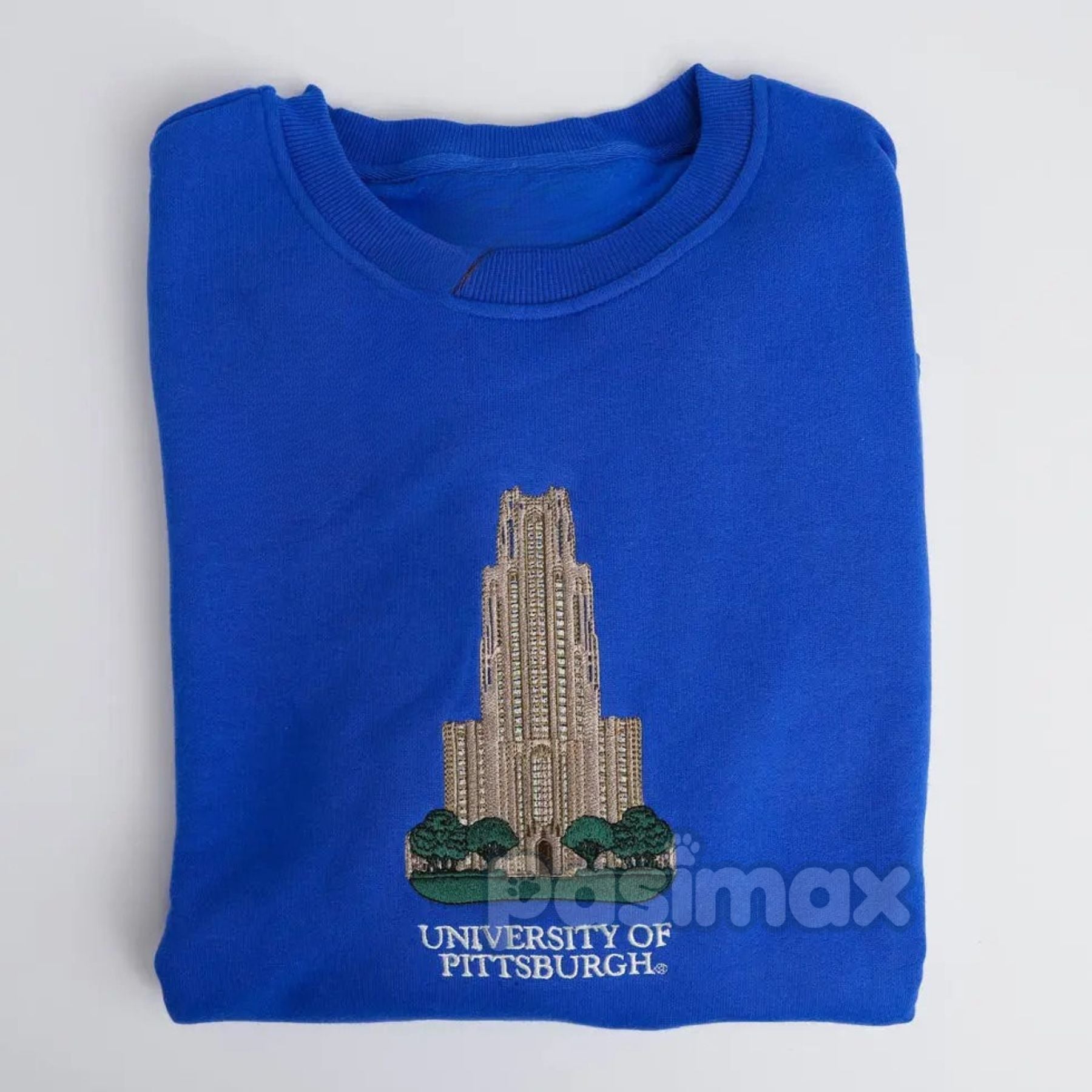 🟡🔵 Show your school pride in style with our Embroidered University of Pittsburgh Sweatshirt. This classic crewneck is a must-have for students, alumni, and fans of the Pitt Panthers. Featuring a high-quality, tasteful embroidery of the university name, it offers a sophisticated way to represent your alma mater.