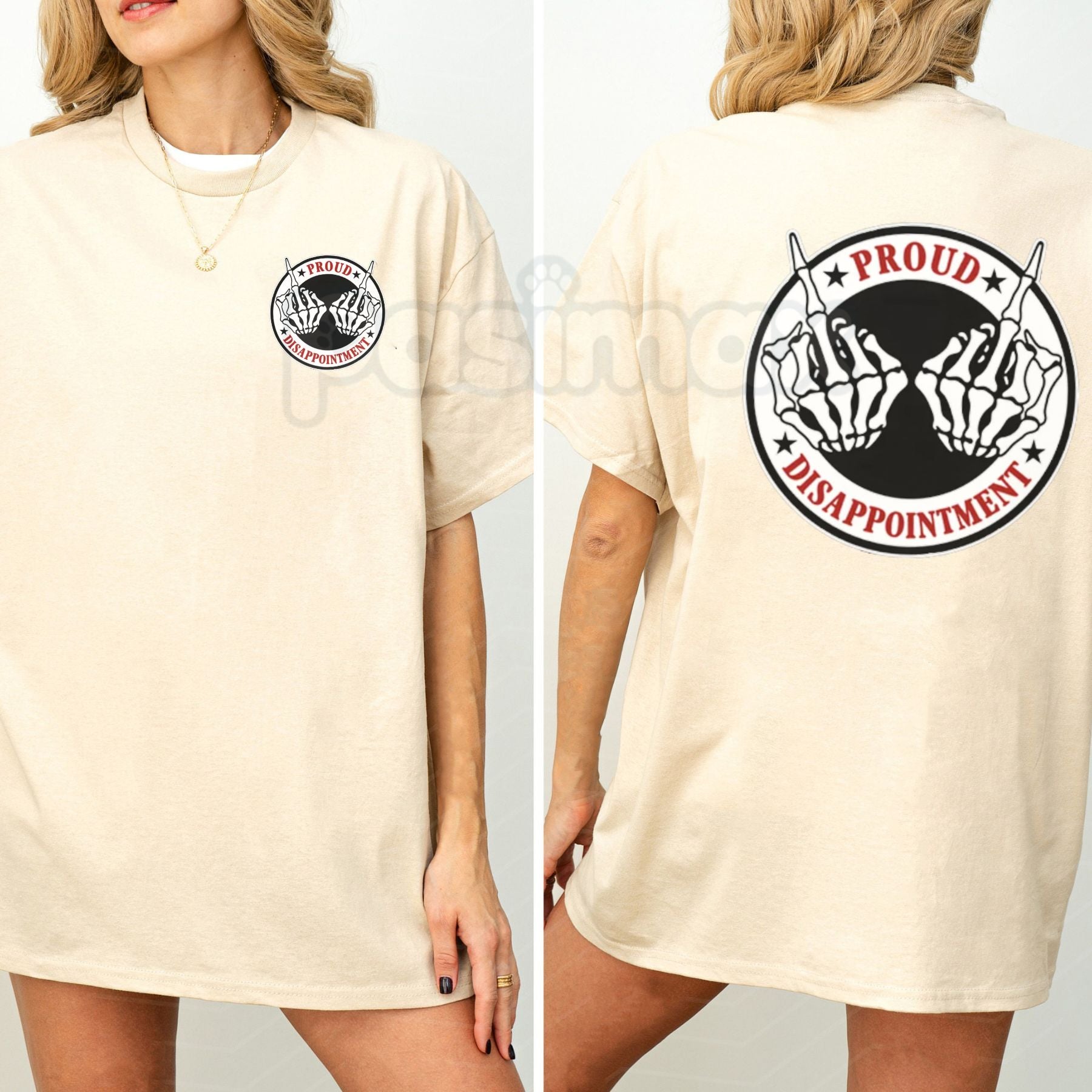"PROUD DISAPPOINTMENT" T-Shirt - Defiant Bone Hand Graphic Tee, Dark Humor Slogan Shirt, Men's Edgy Self-Deprecating Apparel