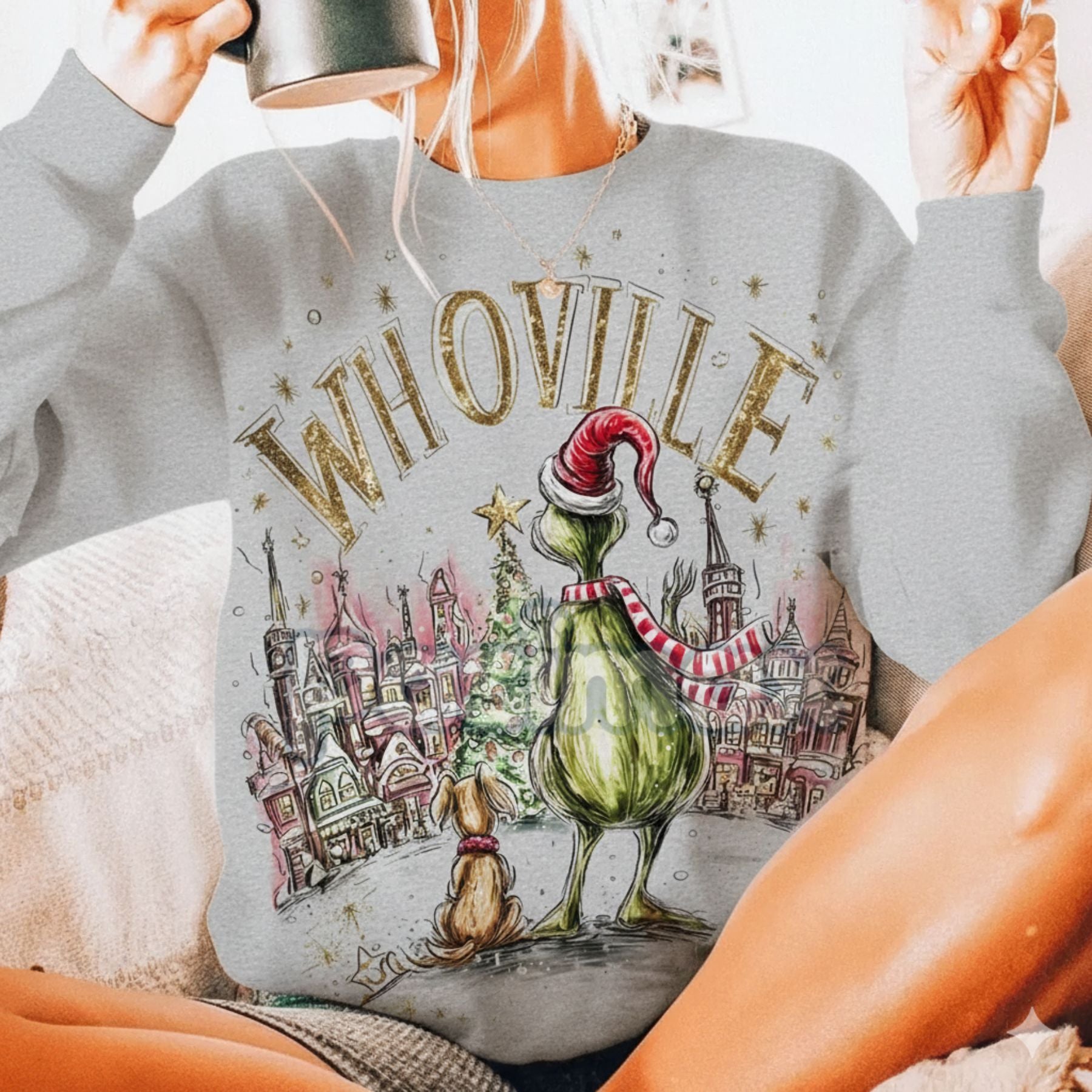 • Vintage Fandom Graphic: Features a Retro Grinchmas or Grinch illustration, often with a distressed look to enhance the vintage holiday movie aesthetic.