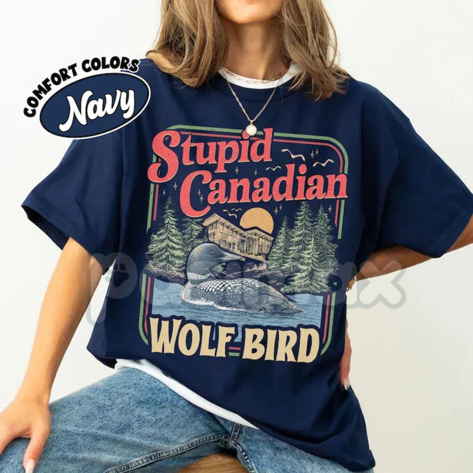 Celebrate the greatest rivalry in hockey romance with our Team Hollanov "Stupid Canadian Wolf Bird" T-Shirt. This version leans into a vintage collegiate sports aesthetic, designed for fans who want to represent the iconic pairing of Shane and Ilya with a touch of retro flair. Featuring the "Wolf Bird" nickname in a classic 70s Sporty Font and muted retro tones, this tee is the ultimate inside joke for those who have read and re-read the Heated Rivalry series more times than they can count.