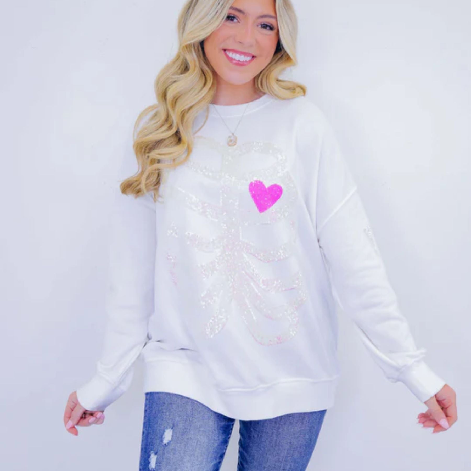 Elevate your Halloween wardrobe with the Sequin Skeleton Halloween Sweatshirt. Designed for women who love blending festive fun with everyday fashion, this long sleeve crew neck pullover features shimmering sequin skeleton accents that add a bold and playful edge.