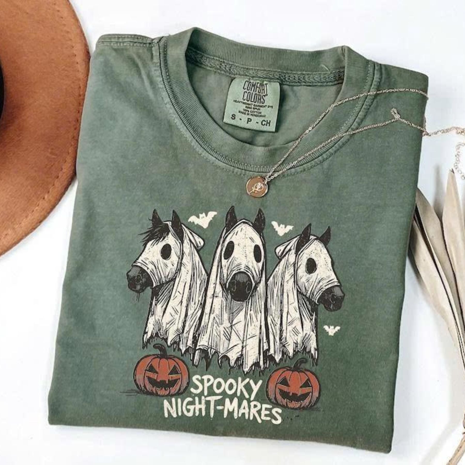 Comfort Colors Halloween Spooky Night-Mares Horse Shirt, Cute Ghost Horse Tee, Western Halloween Cowgirl Graphic T-Shirt, Fall Season Gift