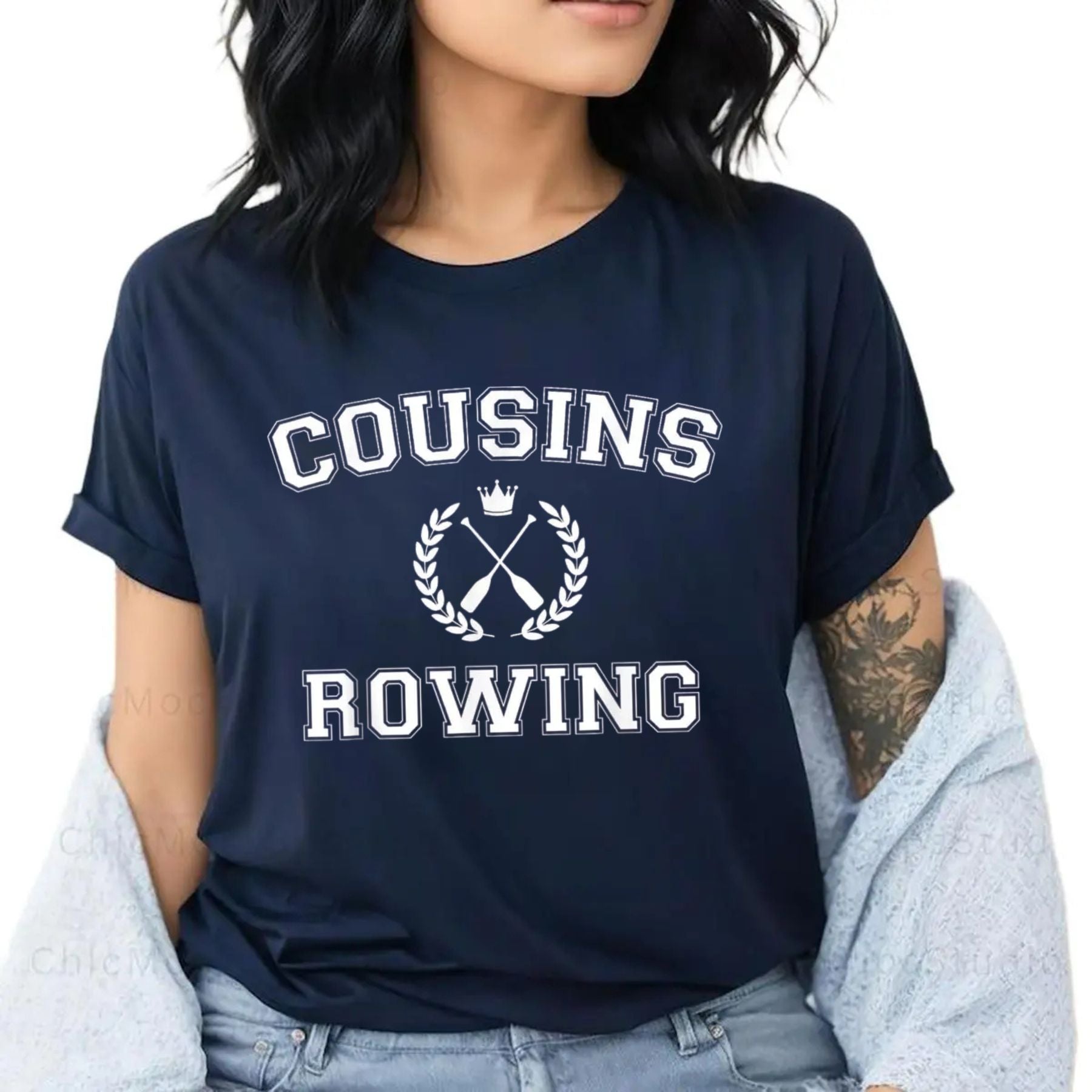 This "Team Conrad" T-shirt is the perfect way to show your allegiance in the ultimate summer romance debate. Inspired by the Cousins Rowing crew from "The Summer I Turned Pretty", this tee is a must-have piece of TSITP fan apparel. The classic Cousins Beach Est. 2009 detail adds a nostalgic touch, making it a great gift for fans who know the true meaning of a perfect summer.