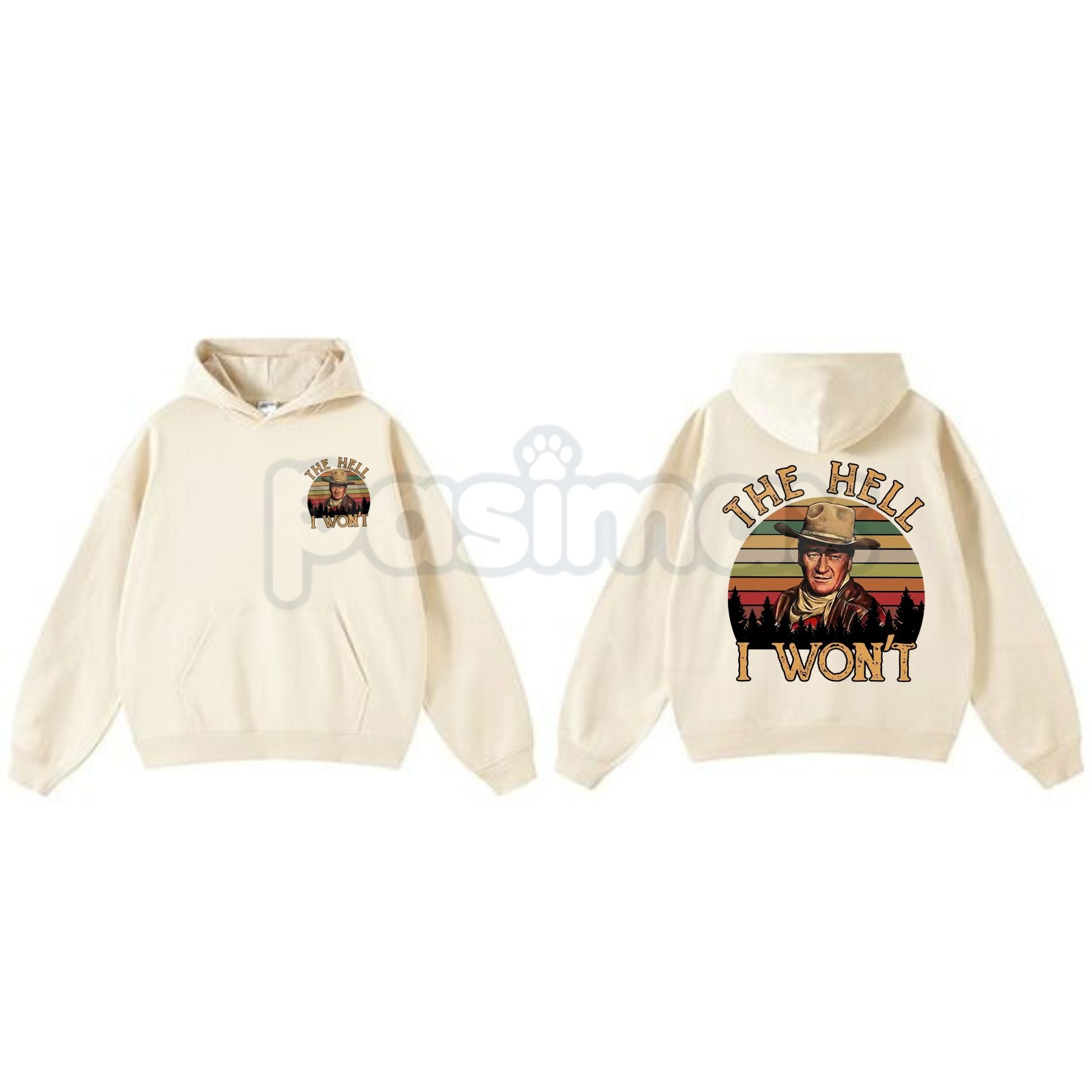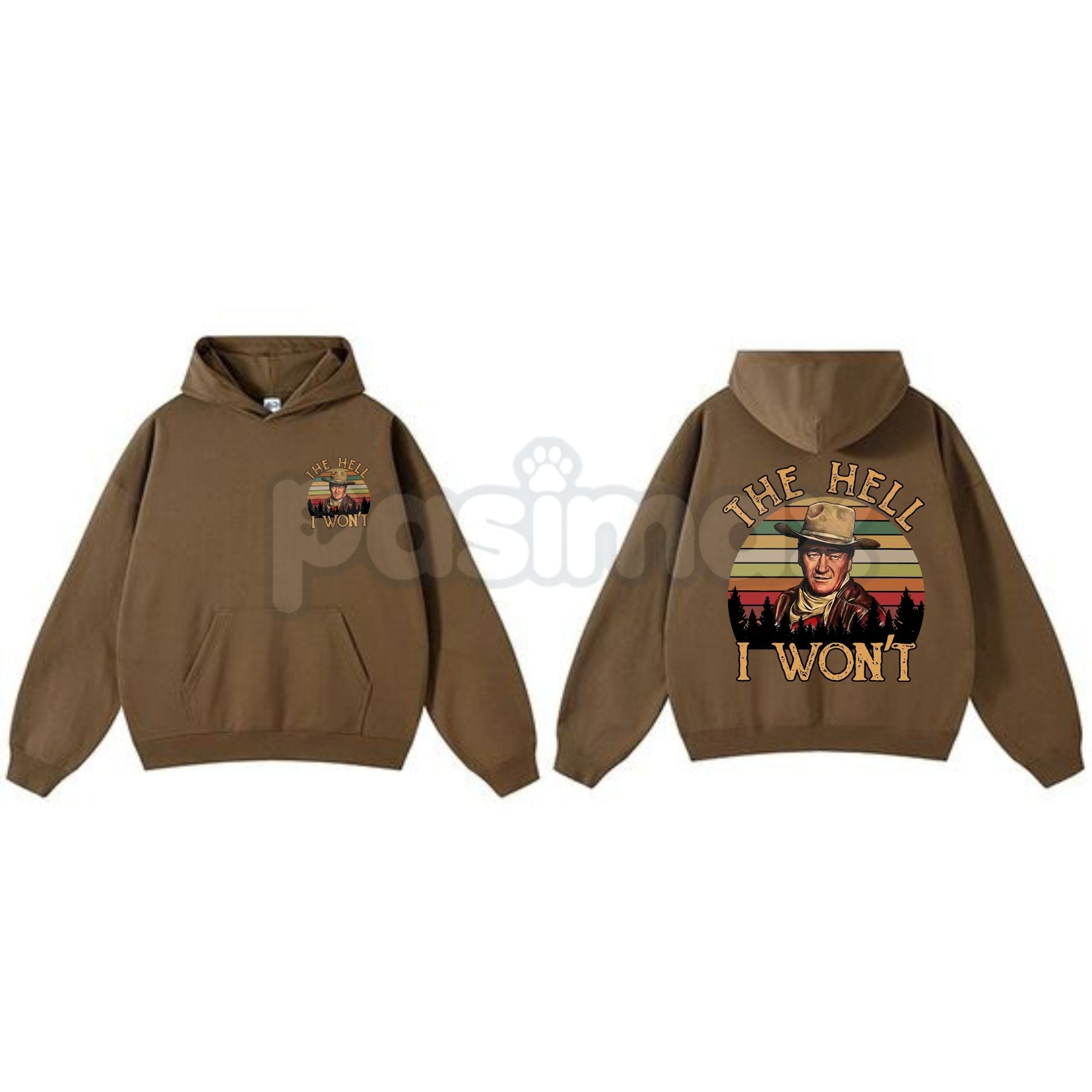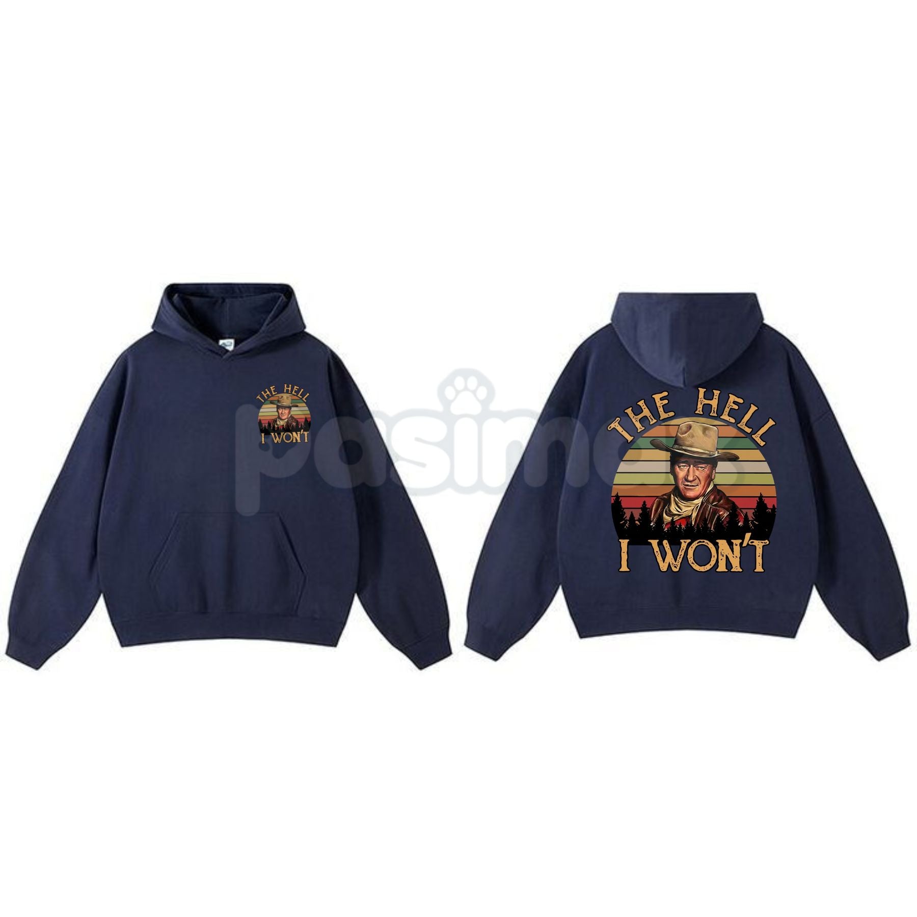 The Duke "The Hell I Won't" John Wayne Hoodie – Vintage Western Legend Pullover, Rugged Cowboy Graphic Apparel, Unisex