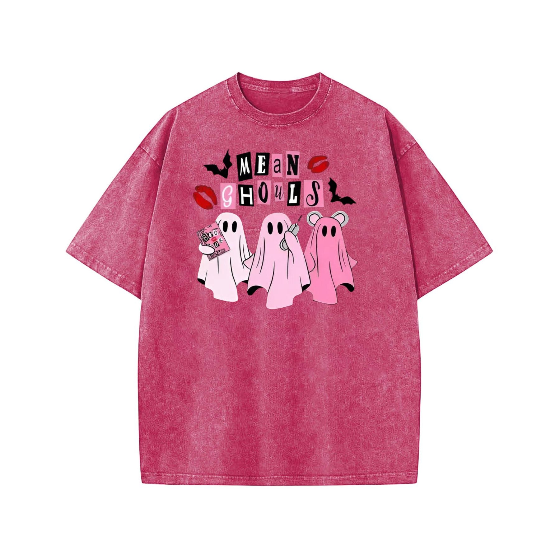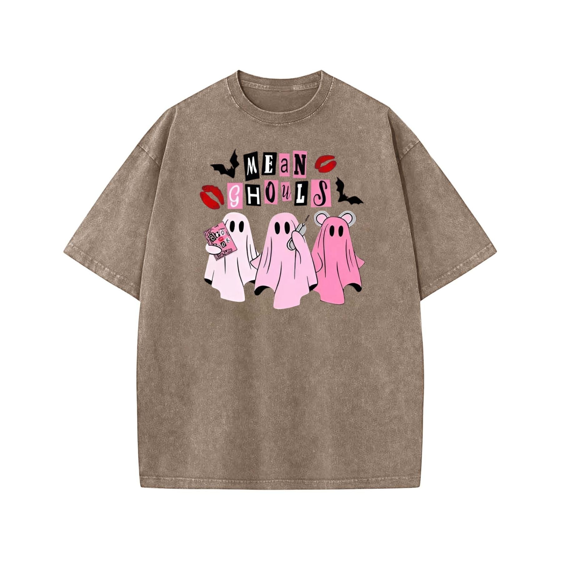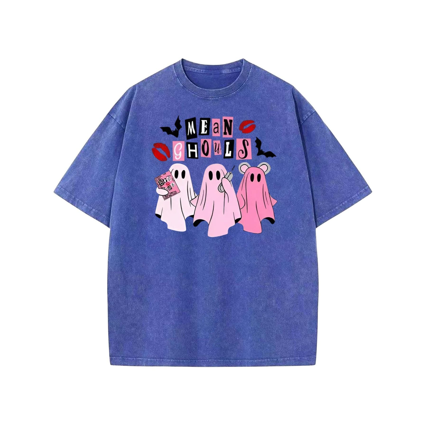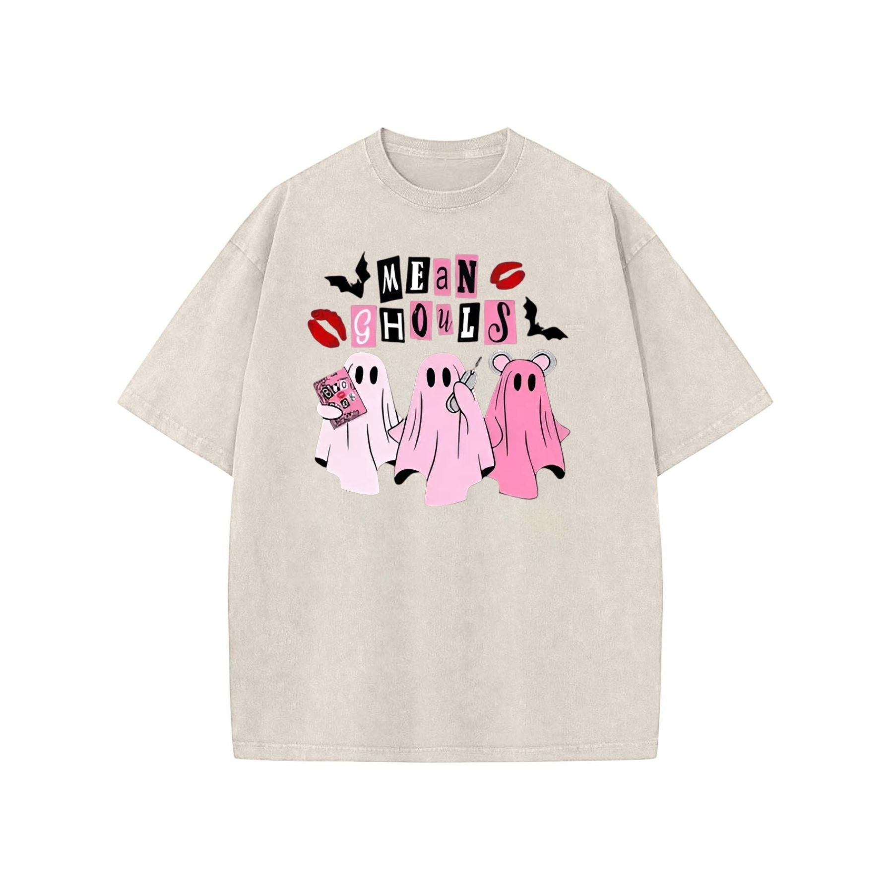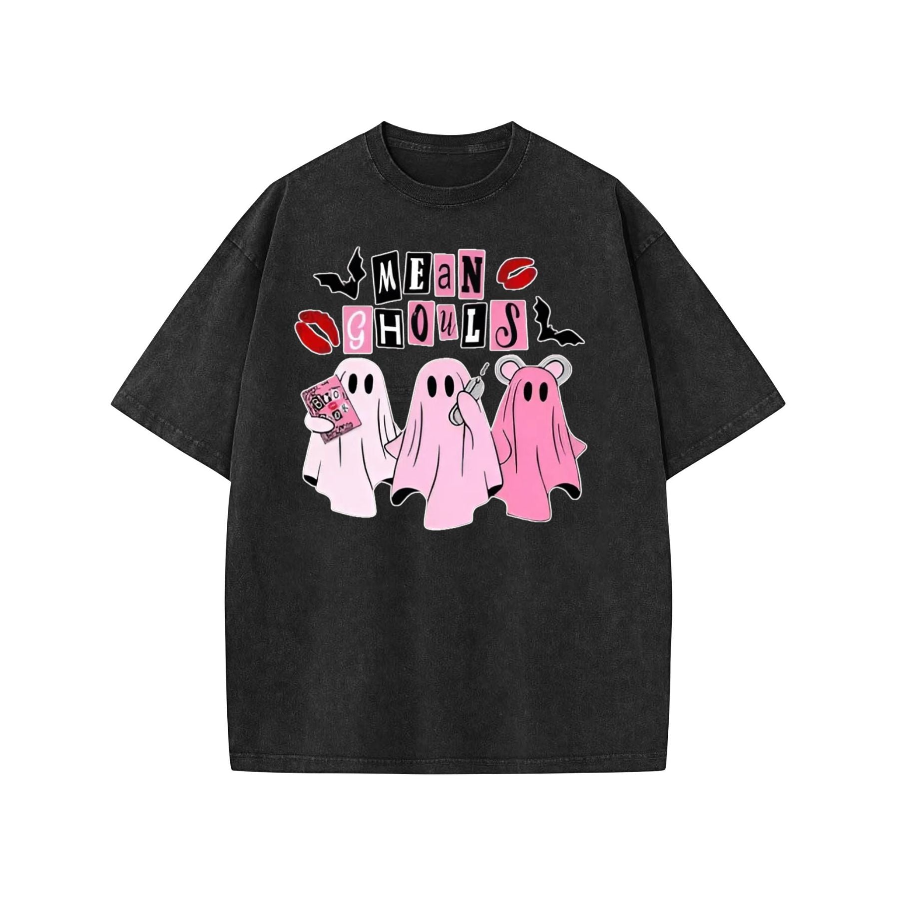 Unisex "Mean Ghouls" Halloween T-Shirt – Washed Cotton, Vintage Streetwear, Bat Graphic