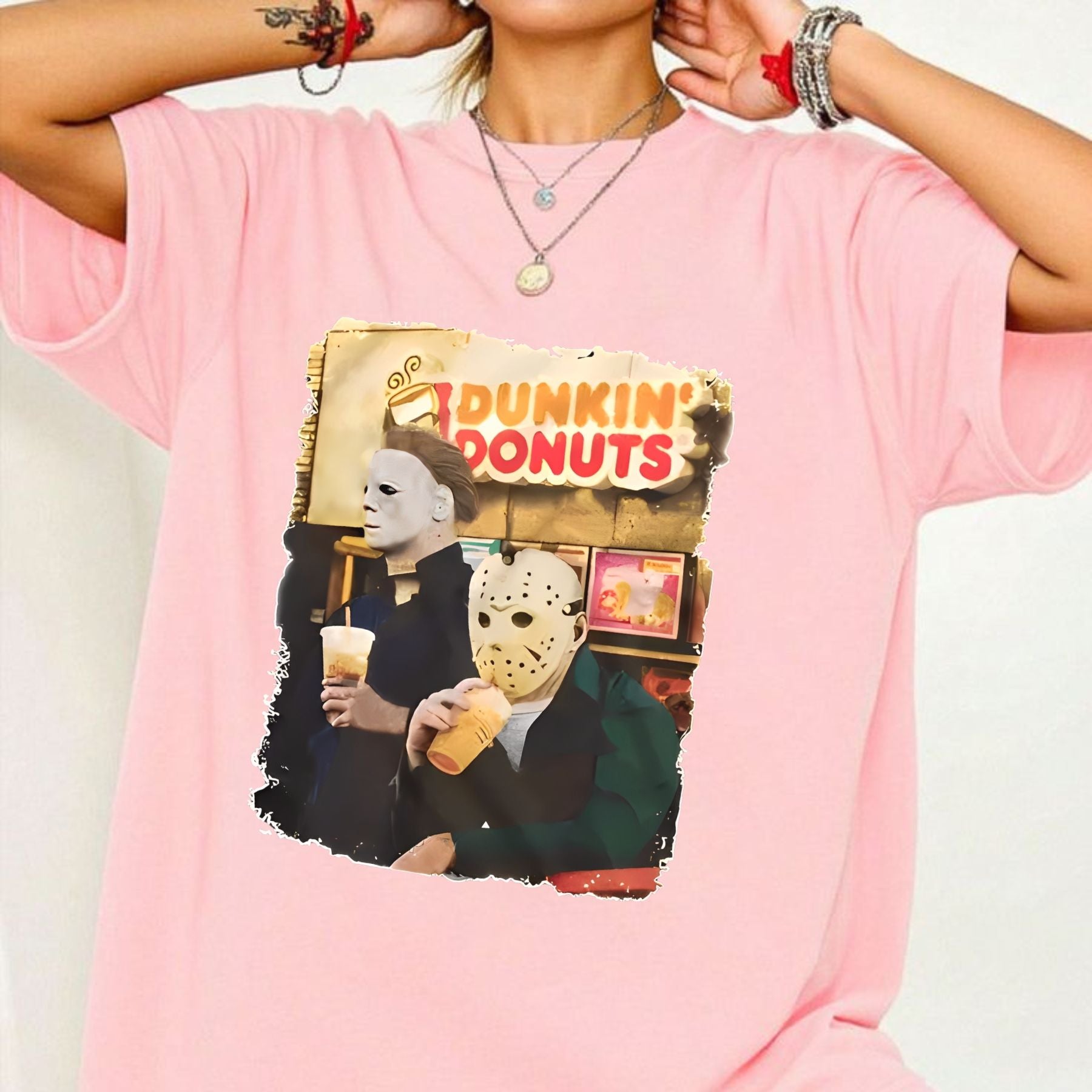This Vintage Horror Cartoon Character T-Shirt is the perfect spooky-chic addition to your fall wardrobe. Featuring a one-of-a-kind Halloween print that blends classic cartoon charm with a haunting twist, this stylish short sleeve casual top is designed for the modern woman who loves a touch of spooky fun. It's an ideal choice for a casual day, a spooky movie night, or as a perfect birthday gift idea for the friend who lives for spooky season.