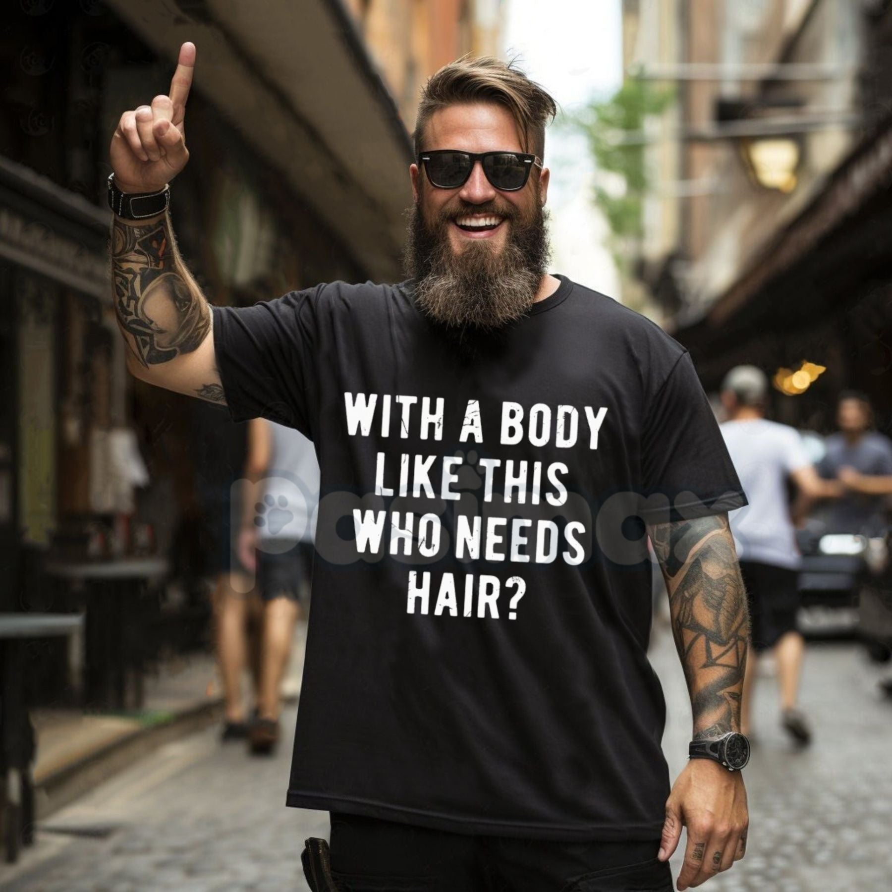 "With A Body Like This Who Needs Hair" T Shirt - Prioritizing the Physique 😂💪