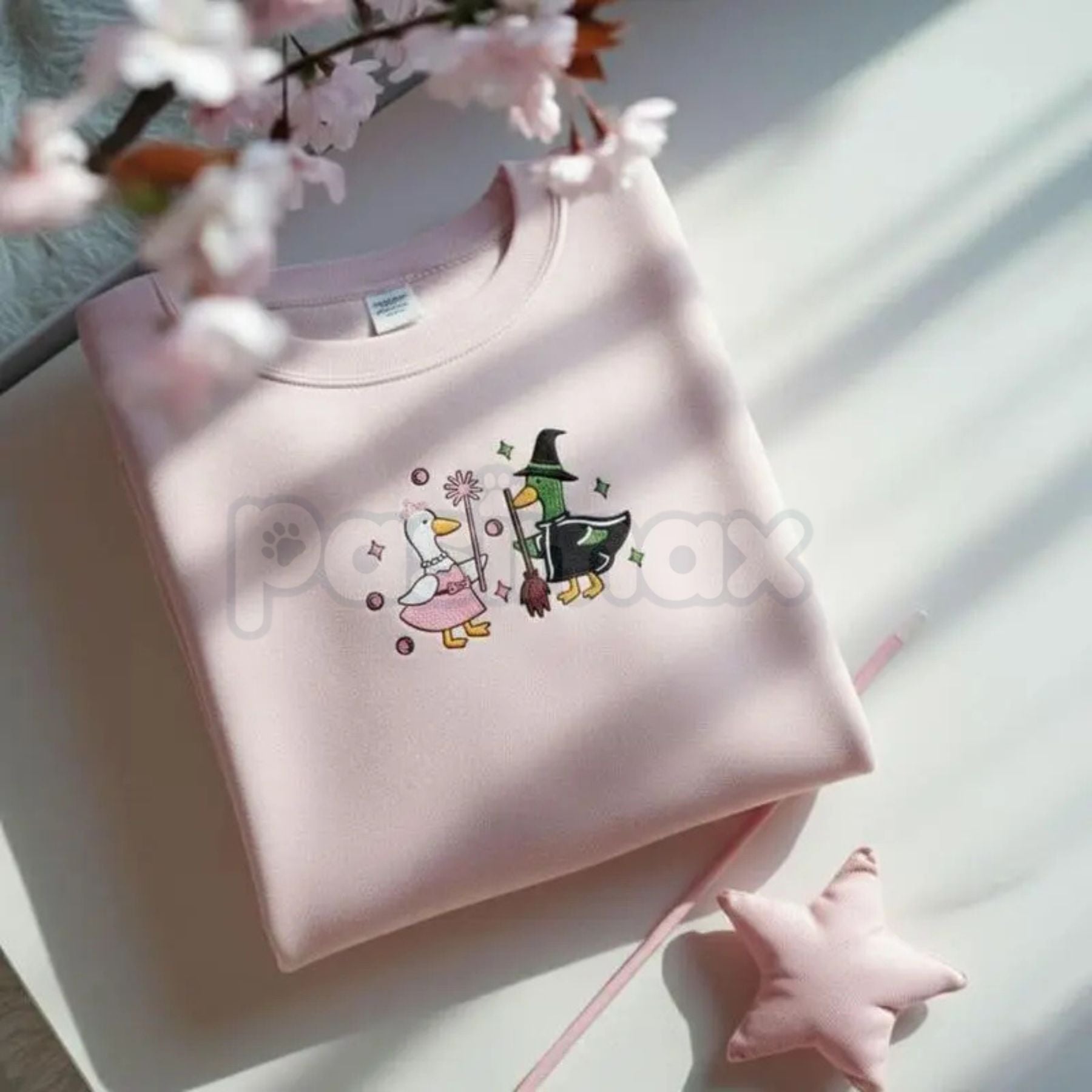 🦢💚 Celebrate the magical bond between two friends—one green, one possibly honking—with our Wicked Goose "For Good" Embroidered Sweatshirt! This hilarious and cozy crewneck features a subtle, high-quality embroidery of the iconic phrase "For Good," perhaps paired with a mischievous goose icon, giving the beloved Broadway lyric a wonderfully quirky twist.
