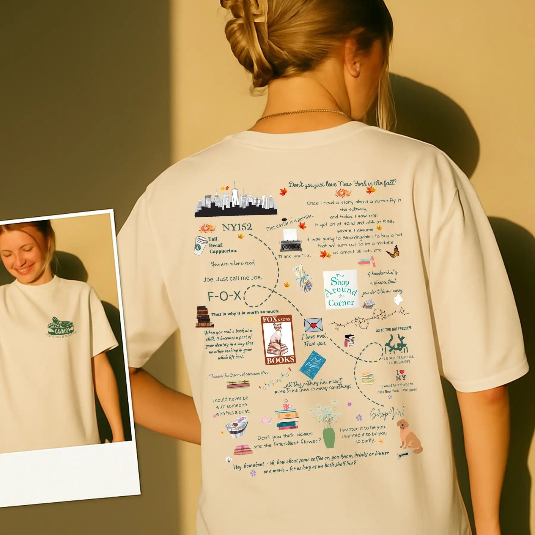 This "That Caviar Is Agarnish" T-shirt is a charming tribute to one of the most beloved rom-coms of all time, You've Got Mail. The design is a nod to the unforgettable moments and witty dialogue that made this a classic. It’s the perfect vintage tshirt for fans of the Shop Around The Corner and every New York City love story that follows.